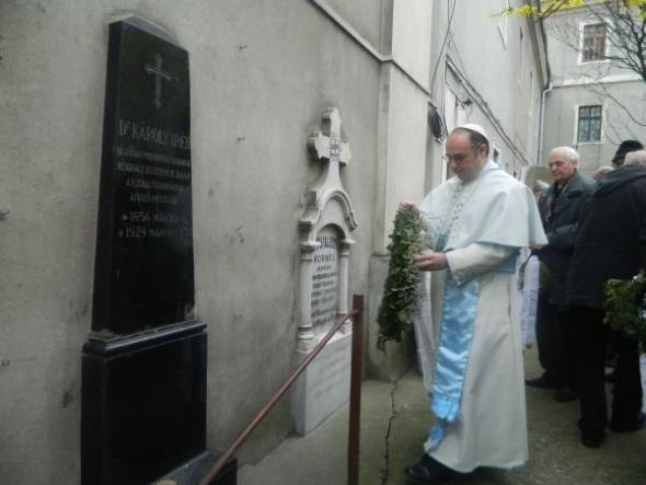 A résztvevők megkoszorúzták Károly Iréneusz József a premontrei templom falába épített sírkövét, majd az öregdiákok egyesületének kezdeményezésére átvonultak a Mihai Eminescu Főgimnáziumba, ahol megkoszorúzták a fizikus szerzetes emléktábláját.