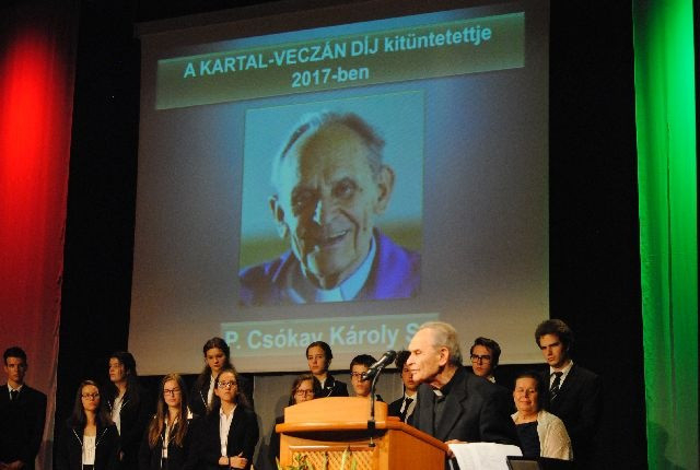 Az ünnepi beszéd után következett a Kartal–Veczán-díj átadása. Idén Csókay Károly jezsuita atya vehette át az elismerést, akinek laudációját Alakszainé Oláh Annamária, a Keresztény Értelmiségiek Szövetsége miskolci csoportjának elnöke mondta el.