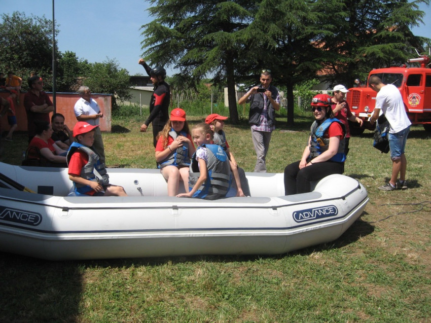 A műhelymunkák gyakorlati részét a következő napon Muzslyán tartották, a helyi önkéntes tűzoltó egyesület gyakorlóterepén. Különféle, a tűz oltásához kapcsolódó gyakorlatokat mutattak be a legfiatalabbak. A jelenlévők megszemlélhették az ajándékba kapott eszközöket is. A muzslyai önkéntesek mellett megosztották tapasztalataikat a Szerbiai Önkéntes Mentőcsapat zimonyi tagjai is, akik az obrenováci árvíz idején végzett tevékenységükről beszéltek, valamint bemutatták a mentéshez használatos eszközeiket.