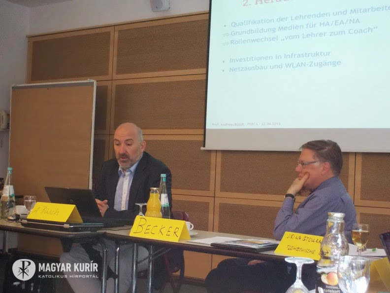 A két bevezető előadást a kommunikációtudomány szakértői tartották. Andreas Büsch, a Mainzi Katolikus Főiskola professzora arról beszélt, hogyan hat ránk a digitális média, milyen lehetőségeket rejt magában, és milyen kihívások elé állít minket. Szólt az új eszközök alkalmazása elsajátításának jelentőségéről, valamint a célcsoportnak és a képzés tárgyának megfelelő kommunikációs eszközök kiválasztásának fontosságáról.