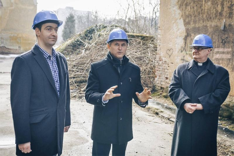 A romos építményben helyszíni bejárást tartott Schmidt Csaba, Tatabánya polgármestere, Bencsik János országgyűlési képviselő, Spányi Antal megyéspüspök, Dózsa István püspöki vagyonkezelő és Turzáné Papp Erika, a tatabányai Szent Margit Általános Iskola igazgatónője.