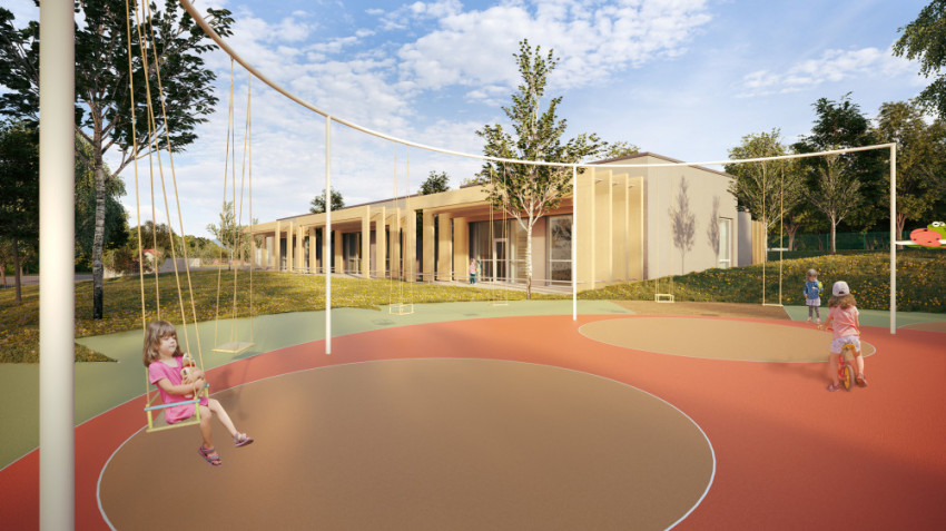 Az új óvodaépületről a Greg Építész Stúdió készített látványterveket.