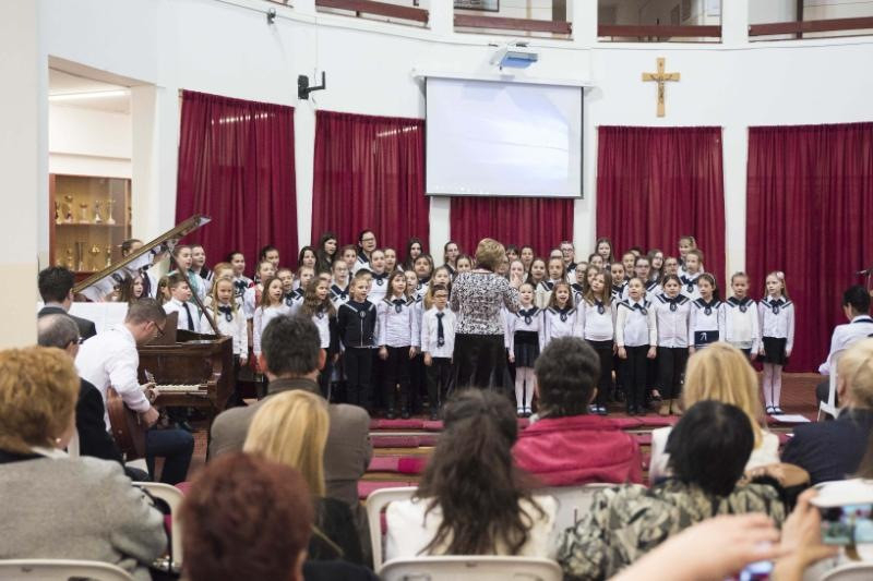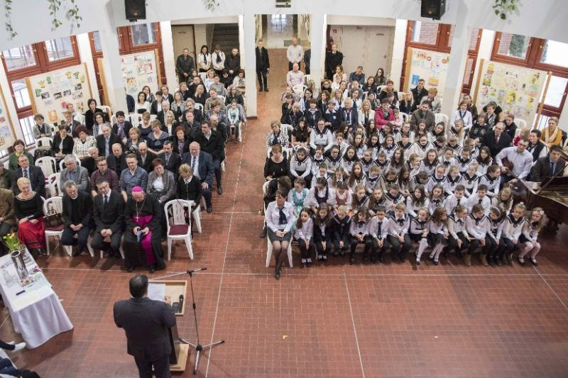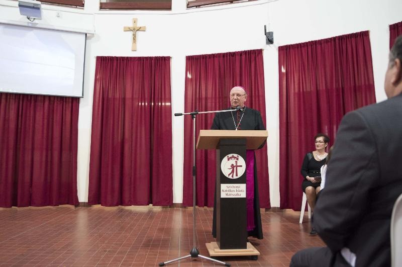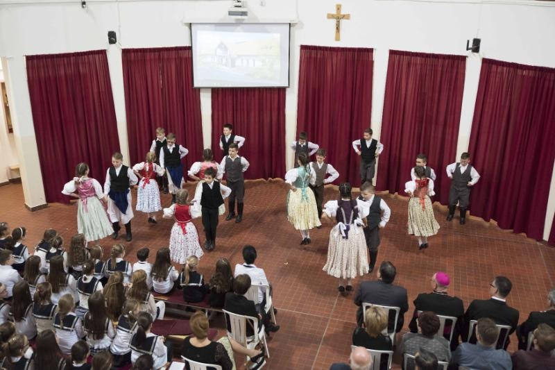 Az ünnepség az iskola énekkarának műsorával kezdődött. Ezt követte Dienes Béla igazgató beszéde, amelyben köszönetet mondott az erkölcsi és anyagi támogatásért. Palánki Ferenc megyéspüspök a gyermekek megáldásáról szóló evangélium felolvasása után az Isten szeretetének élményéről beszélt. A főpásztor XVI. Benedek pápa gondolatára utalt, aki a jelen kor fiataljainak krízisjelenségeiben a nevelés válságát látta. Benedek pápa üzenetében meghívta a szülőket, pedagógusokat, tanárokat, papokat hogy segítsenek a gyermekeknek, fiataloknak eligazodni a bizonytalan világban. E gondolatában a pápa a szülőknek szólva kifejtette, legyenek hiteles tanúi a szeretetnek, hiszen a szülők egymás iránti szeretete a legtöbb, ami adható a gyermekeknek, amely közegben egészséges módon tud felnőni a gyermek.