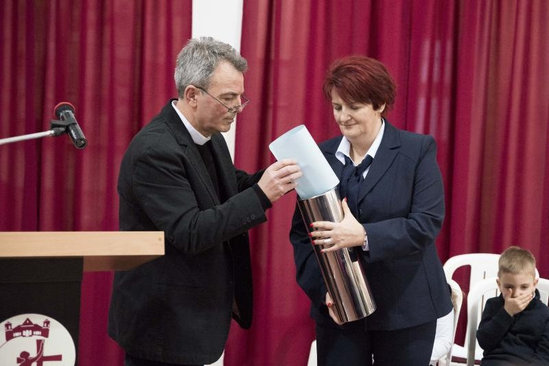 A megyéspüspök folytatva e gondolatot hozzátette, a felülről érkező kegyelem, segítség, áldás és az ember részéről alulról jövő szeretet találkozása az az isteni remekmű, amikor megszületik valaki, a megismételhetetlen, végtelen érékű személy. Ezt a feladatot elvállalva, együttműködve a szülőkkel Isten szándékát valósítjuk meg az iskolában, óvodában. „Amikor óvodát építünk nem épületet, hanem jövőt, Isten országát építjük. Azzal a szeretettel szeressünk, amellyel Jézus átölelte a gyermekeket és megáldotta őket, hogy maguk is áldás lehessenek a világ számára” — zárta gondolatait a főpásztor.