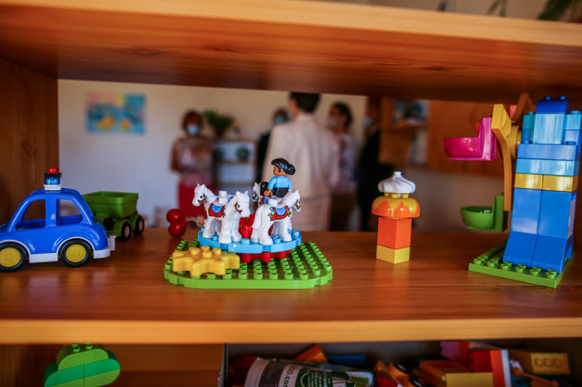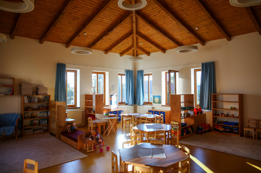 A művészetre épülő pedagógiai program alapműfajai – zene, mese, rajz – térben is különálló egységek. Fontosak a színek, az esztétikum, hiszen a gyerekek idejük nagy részét itt töltik – hangsúlyozta az óvodapedagógus. Elmondta: még épülőben vannak a játszóudvarok. Minden csoportnak önálló, saját játszóeszközökkel felszerelt játszóudvara lesz, melyeket az öltözőkön keresztül lehet majd megközelíteni. Lesz egy hátsó, közös játszóudvar is, amely a központi közlekedőfolyosóról nyílik. Hamarosan befejeződnek a koronavírus-járvány miatt elhalasztott munkálatok.