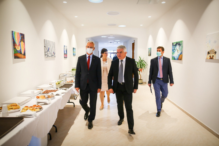 A vendégek Lukács-Kéméndi Ágnes vezetésével tekintették meg az új épületet. A bejárati udvarból központi közlekedőtérbe lép be az érkező. E tértől balra kaptak helyet az adminisztrációs helyiségek és a tornaterem, az átellenes oldalon pedig a melegítőkonyha, illetve, a személyzet szociális helyiségei. Ebből a tágas előtérből kiinduló széles folyosóról nyílik a négy, egyenként hatvan négyzetméteres csoportszoba. A belmagasság tovább növeli a tágasság érzetét.