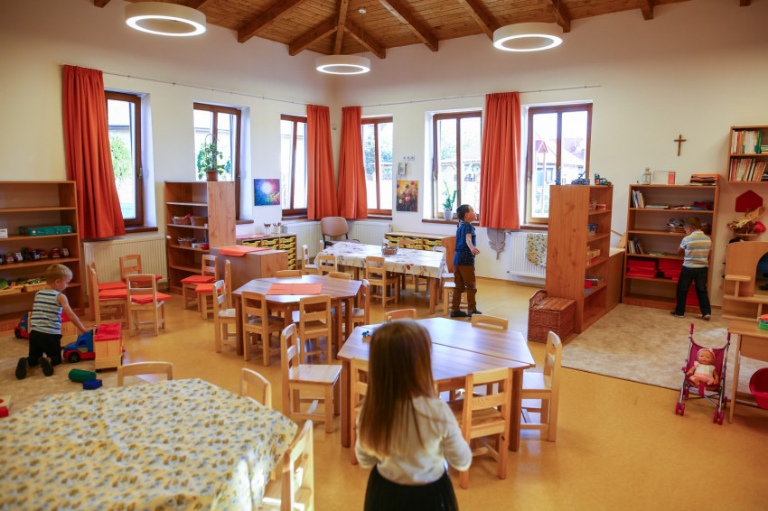 Olivér első napja az óvodában. 2016-ban, születése évében költözött családja Kistarcsára, s ő már az a szerencsés gyermek, aki vadonatúj katolikus óvodába járhat. Az elmúlt öt évben az agglomerációs kisváros lakossága tízezerről tizenkétezerre nőtt. A Budapestről kiköltözők és a vidékről beköltözők nagy számban kisgyermekes családok, így érthető, milyen nagy szükség volt az új óvodára. Meg is telt a két kiscsoport és egy középső; 76 gyermekkel indult szeptember 1-jén a Szent Anna Katolikus Óvoda.