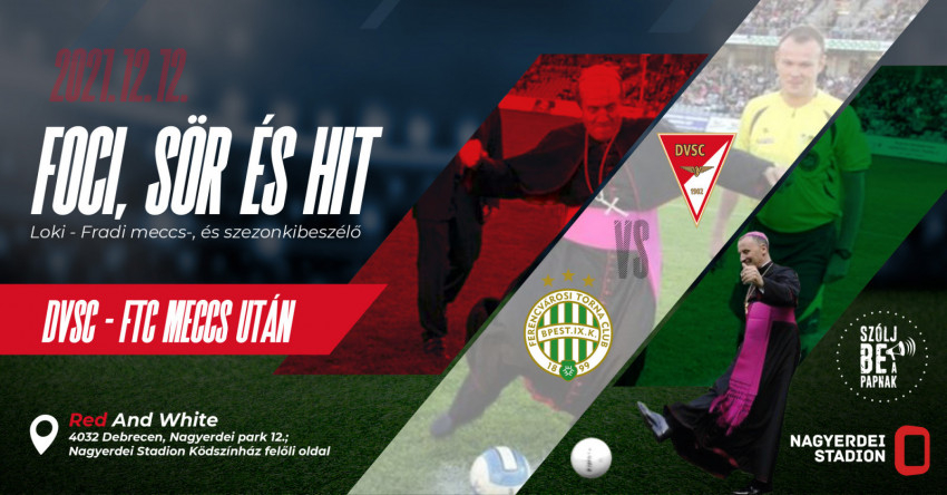 A mérkőzés után Foci, sör és hit címmel meccs- és szezonkibeszélő eseményt rendez a „Szólj be a papnak!” csapata a debreceni Nagyerdei Stadionban található Red and White szurkolói klubban.