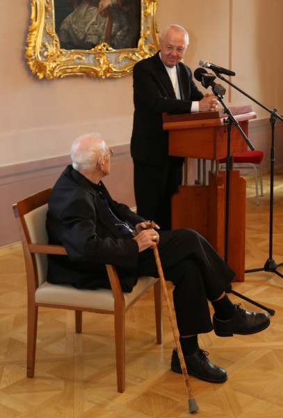 „Hálát adni jöttünk. Püspök atya azt kérte, hogy ne őt, hanem az Isten kegyelmét ünnepeljük, mégpedig azon a napon, amikor megkeresztelték. Azt kívánjuk, hogy azt az időt, amivel Isten még meg akarja ajándékozni, jól tudja használni hálaadásra, elmélkedésre, imádságra, a hosszú életút összegzésére. Ebben mi is vele vagyunk, vele imádkozunk és Isten bőséges áldását kérjük” – zárta köszöntőjét Ternyák Csaba érsek.
