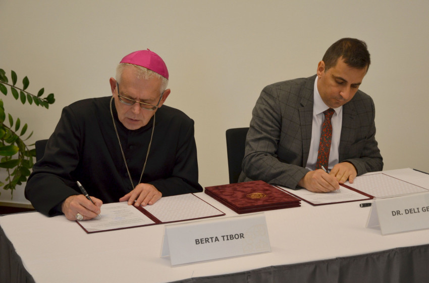 A katonai etikai kutatásokat célzó együttműködésről szóló megállapodást Deli Gergely rektor és Berta Tibor dandártábornok, római katolikus tábori püspök, katonai ordinárius írta alá.