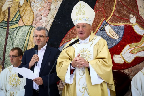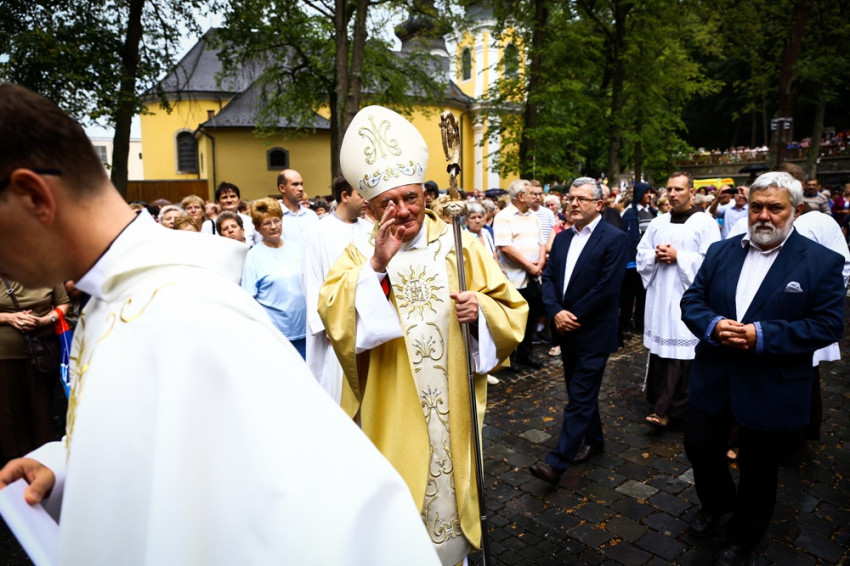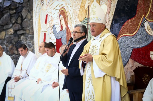 A főbúcsú napján Kazimierz Nycz bíboros átadta Boldog Jerzy Popiełuszko ereklyéit, és bemutatta a vértanú életét. A lengyel bíboros a lengyel nép küldötteként az egész lengyel egyház nevében magyarul köszöntötte a búcsús zarándokokat. Ezeréves történelmünk folyamán közös szentjeink szorosan összekapcsolják a lengyel és magyar nemzetet. A szentek sorából kiemelte a 20. század vértanúit, az irgalmasság apostolaként tisztelt Fausztina nővért és a század második felének mártírját, Boldog Jerzy Popiełuszko atyát. Örömét fejezte ki, hogy Magyarország nemzeti kegyhelyén is otthonra talál ereklyéje. Fontos, hogy megismerjük azok életét, akiket egyházunk az oltárra emel. Életpéldájuk utat mutat mind az Isten-szeretet, mind az emberszeretet útján. Emberként szükségünk van a jelekre, ilyenek számunkra az ereklyék – mondta a bíboros. Bennük az egyház hagyománya szerint a szentháromságos egy Istent magasztaljuk. Szentjeink hitvalló életében Isten szeretetét szemlélhetjük. Kövessük Isten és emberek iránti odaadottságukat – buzdított Kazimierz Nycz.