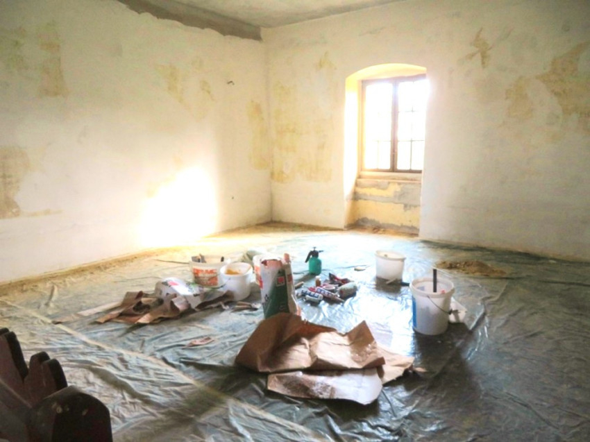 2020-ban kezdődtek meg a kegytemplom felújításának munkálatai, és a terem leszakadófélben lévő mennyezetét teljesen lebontották. Elkészült az új mennyezet, majd 2022 decemberére a templom külső felújítása is. Még abban az évben sikerült bevezetni – a Máriakéméndi Német Önkormányzat támogatásának köszönhetően – a terembe az áramot, és lámpatesteket is vásároltunk. Így már világítása is volt a helyiségnek.”