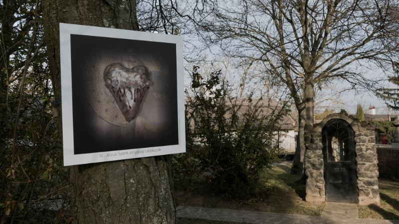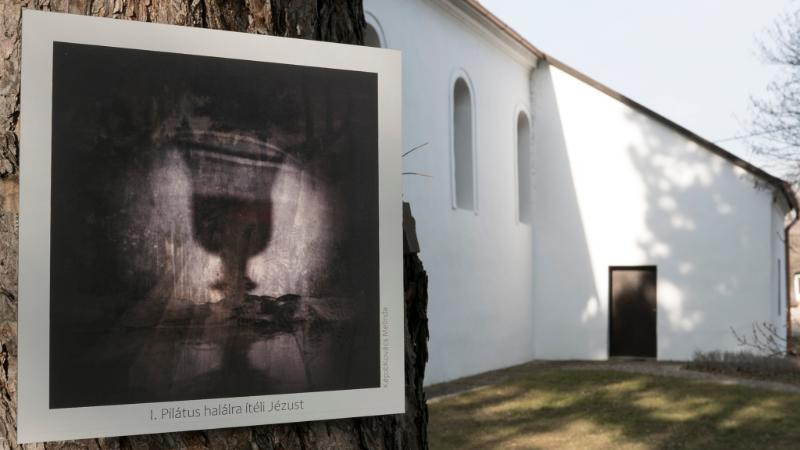 A kékkúti templomkertben elhelyzett fényképek szorosan húsvéthoz, Krisztus szenvedéstörténetéhez kötődnek – miként az esztergomi fotóművész fogalmazott: a keresztút eseményeit értelmezik újra.