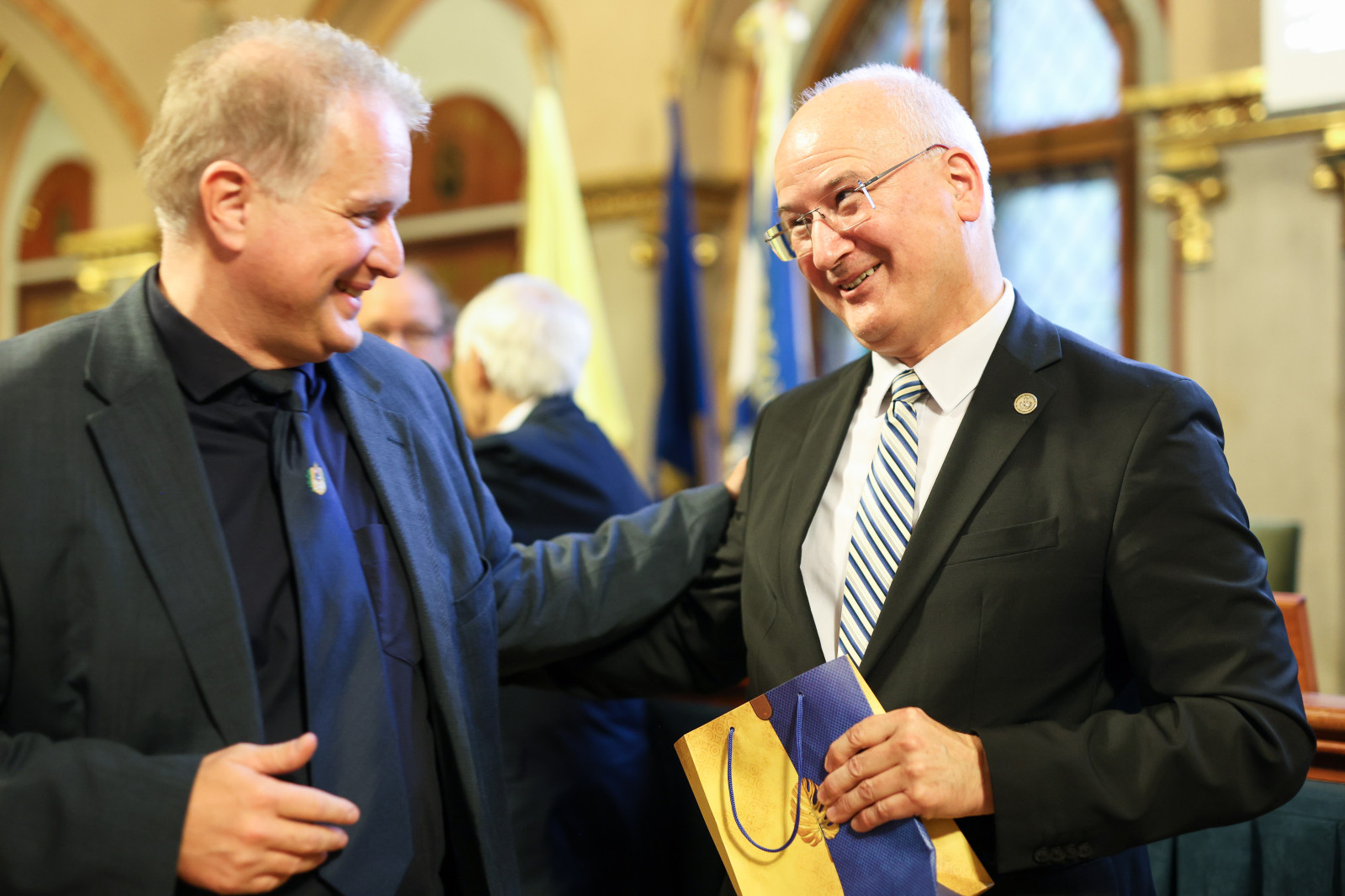 Székfoglaló előadásában Kellermayer Miklós, a Semmelweis Egyetem Biofizikai és Sugárbiológiai Intézet igazgató egyetemi tanára a hallgatóságot a nanovilágba kalauzolta, az atomok és molekulák különleges világába, melynek méretskálája a nanométer. Megmutatta, hogy egyedi molekulák vizsgálatának azért van értelme, mert feltárulkoznak azon tulajdonságok, amelyek a sokaságban rejtve maradnak, így azonban megérthetővé válik a molekulák rugalmassága, amelyeknek fontos szerepük van az élő sejt működésében.