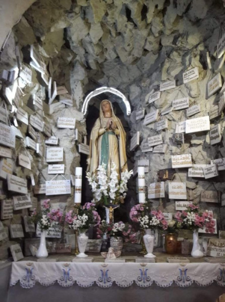 Hősünk a Lourdes-i barlangnál megállt, s a Szűzanyára nézve egyszerre elmúlt a szomorúsága.