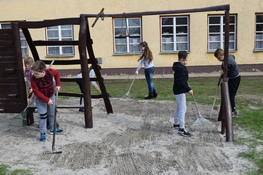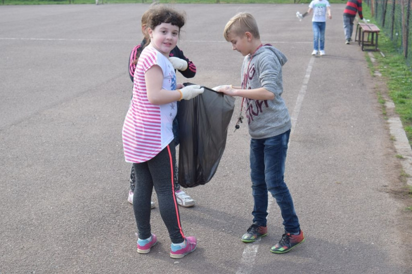 Az alsósok az iskola és a plébánia udvarát takarították. Minden osztály kiválasztott egy-egy területet. Voltak, akik szemetet szedtek, mások a játszótereket rendezték. Nem maradt el a virágültetés sem, melyhez a virágokat az iskola pedagógusai és a helyi kertészet ajánlotta fel. Az elsősök egy kis sziklakertet alakítottak ki az udvaron. A felsősök az iskola környékén található és a temető melletti utcákat mentesítették az eldobott szeméttől.