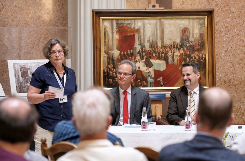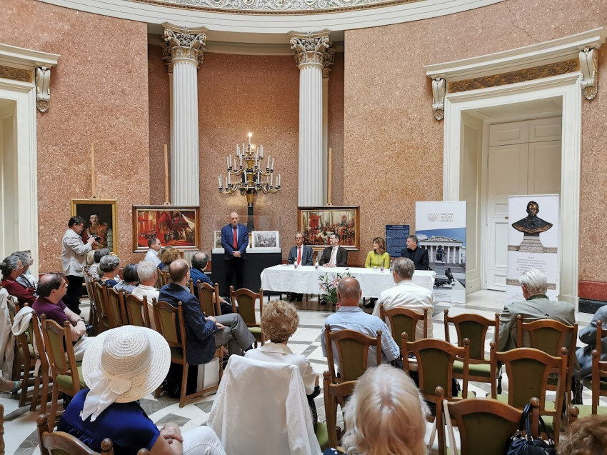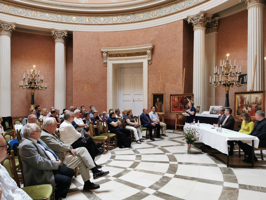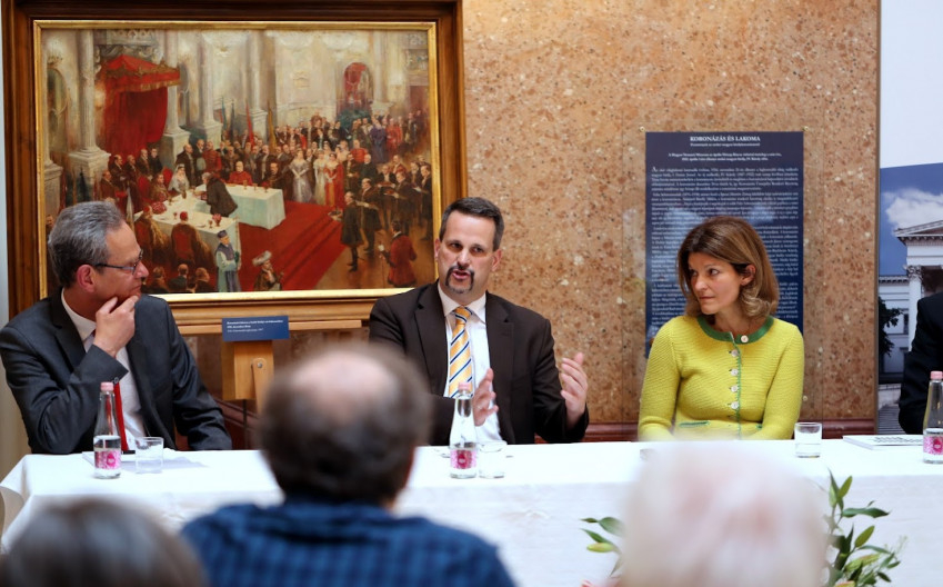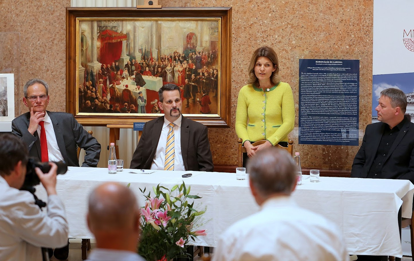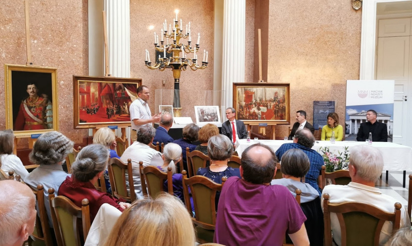 Az est zárásaként Gödölle Mátyás, a múzeum történelmi képcsarnokának vezetője bemutatta a teremben látható kamarakiállítást, a hónap kincsét: az eltűntnek hitt koronázási festményeket.