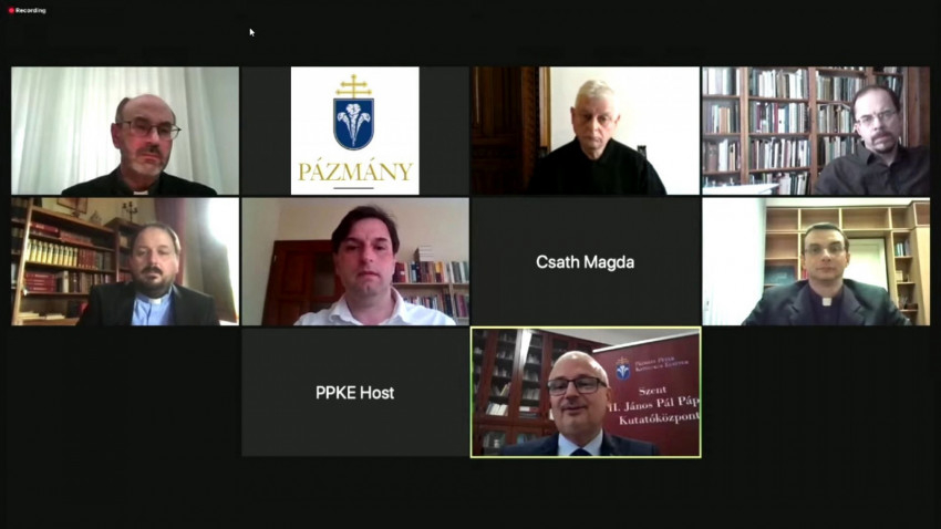 Francesco Maceri, a Szárd Pápai Teológiai Kar dékánja előadását követően Török Csaba teológus, egyetemi tanár; Görföl Tibor teológus, főiskolai tanár és Balázs Zoltán politológus kerekasztal-beszélgetése következett Szent John Henry Newman (1801–1890) jelentőségéről és szellemi örökségéről. A diskurzus moderátora Frivaldszky János jogfilozófus, politológus, a Szent II. János Pál Pápa Kutatóközpont vezetője volt.