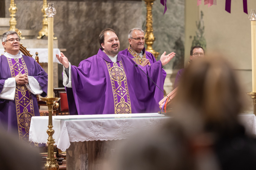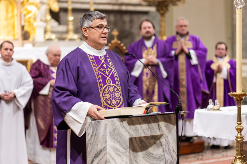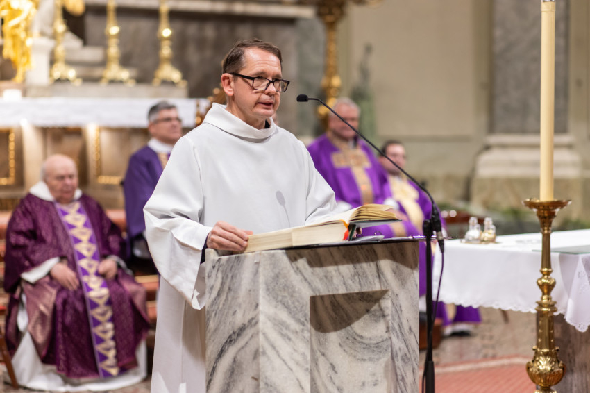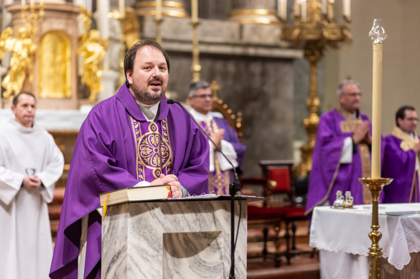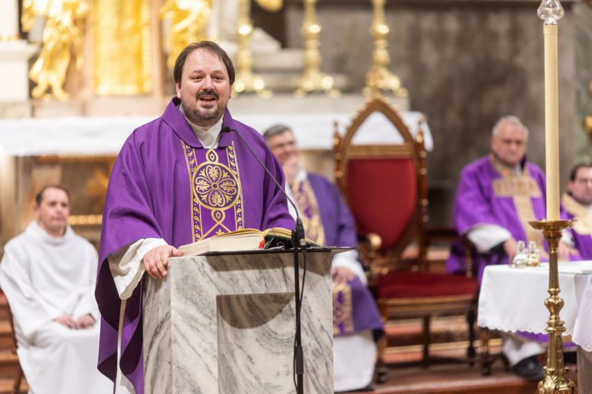 Az evangélium, a Jézus küldetéséről szóló versszakasz Szent Máté könyvéből hangzott el (21, 23–27). Török Csaba homíliájában kifejtette: megszoktuk, hogy az evangéliumban az írástudók és farizeusok cseles kérdéseket tesznek fel Jézusnak. Most viszont fordított a helyzet: Jézus az, aki trükkös kérdéssel csapdába ejti őket. Bármit is válaszolnak, nem lesz jó a felelet, mert így vagy úgy, következménye van, és ezt nem merik vállalni a nép előtt. A szónok „ellépve” az evangélium eredeti üzenetétől, parafrázisba öntötte a kérdést: