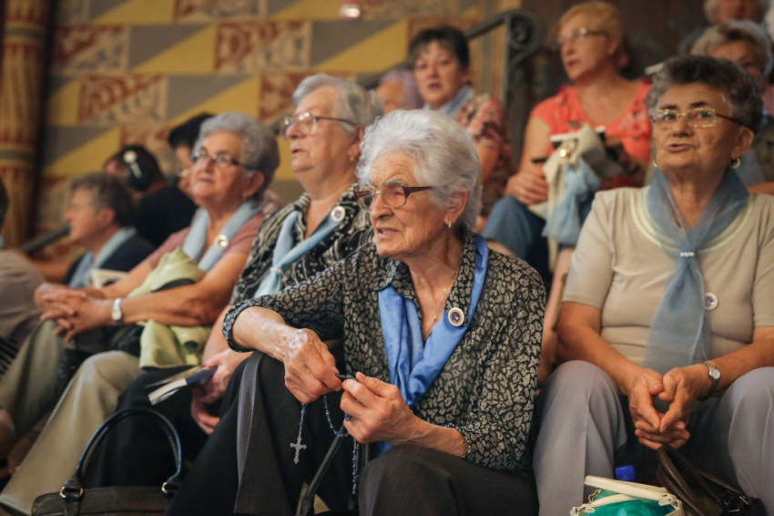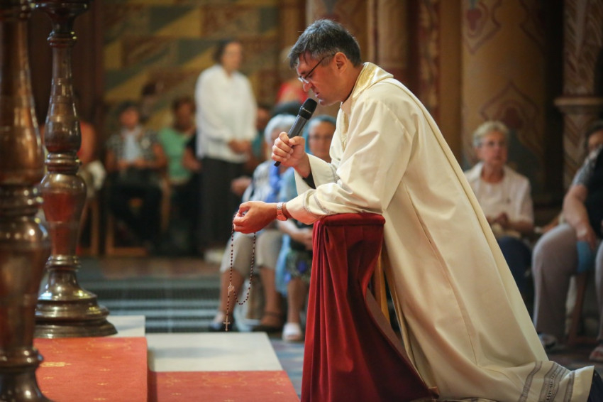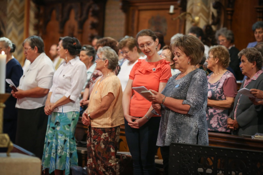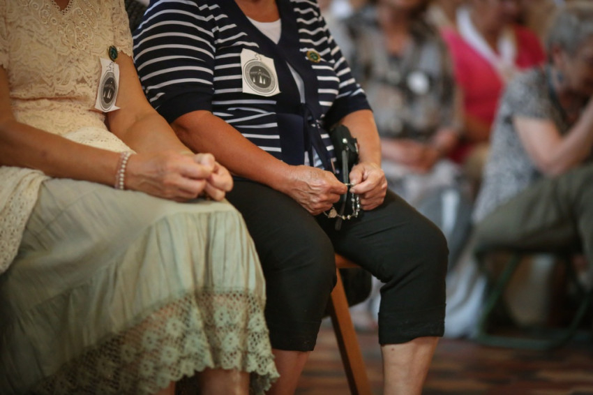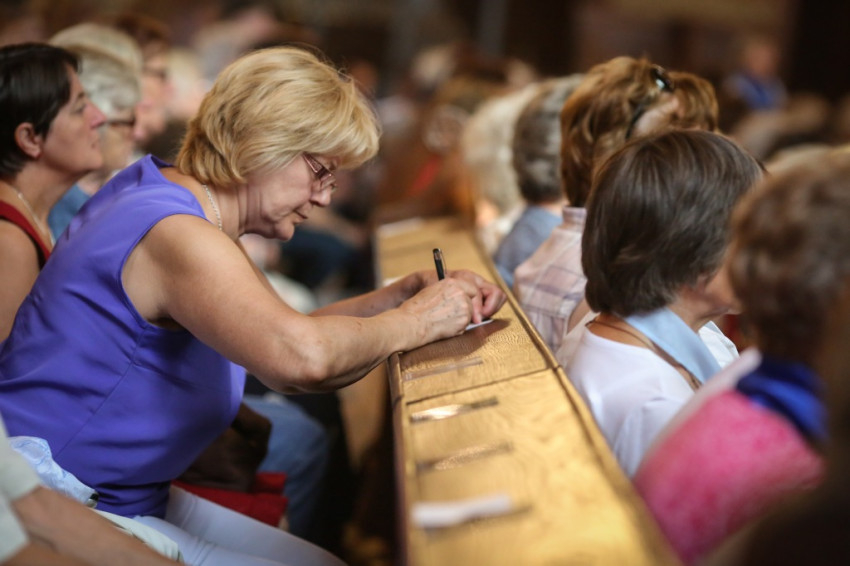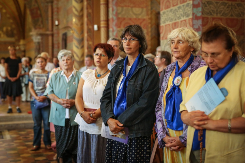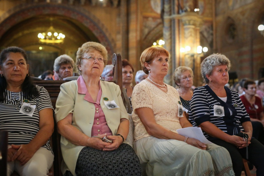 A köszöntő után e szolgáló lelkület szellemében a rózsafüzér imádság következett, s megteltek kis lapokra írt személyes fohászokkal is a kosarak, amelyeket a szentmisében elhangzó könyörgésekhez kapcsolódva az oltárnál helyeztek el.
