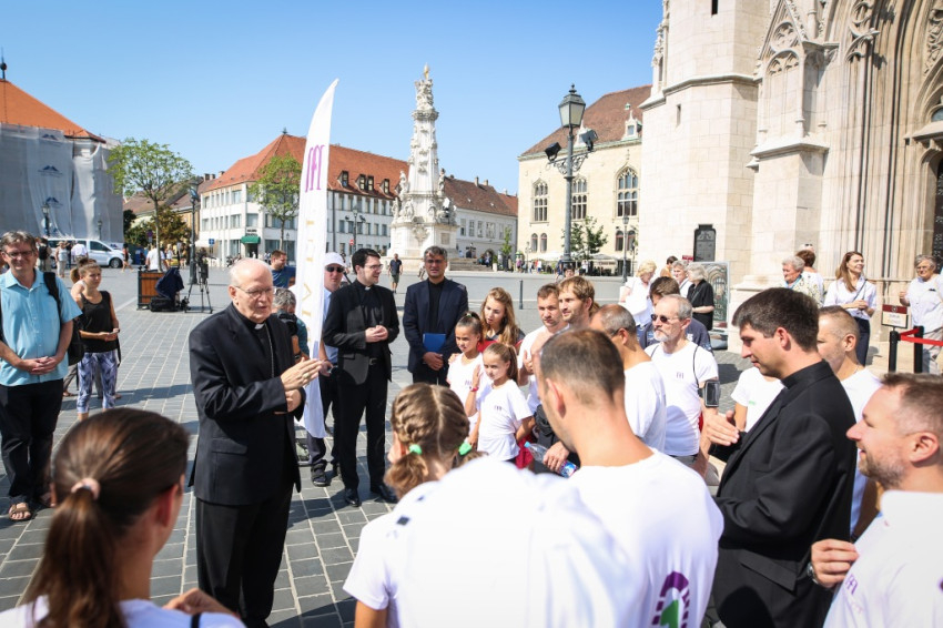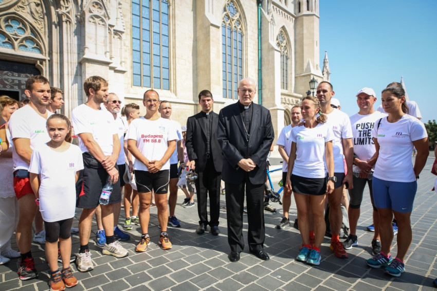 A hálaadó szentmise után Erdő Péter bíboros, prímás áldásával indult el az 1Úton futózarándoklata a Mátyás-templom mellől Máriaremetére.