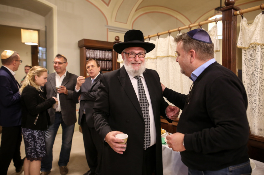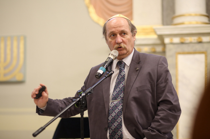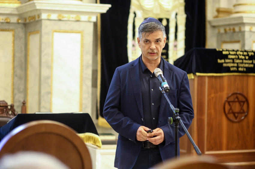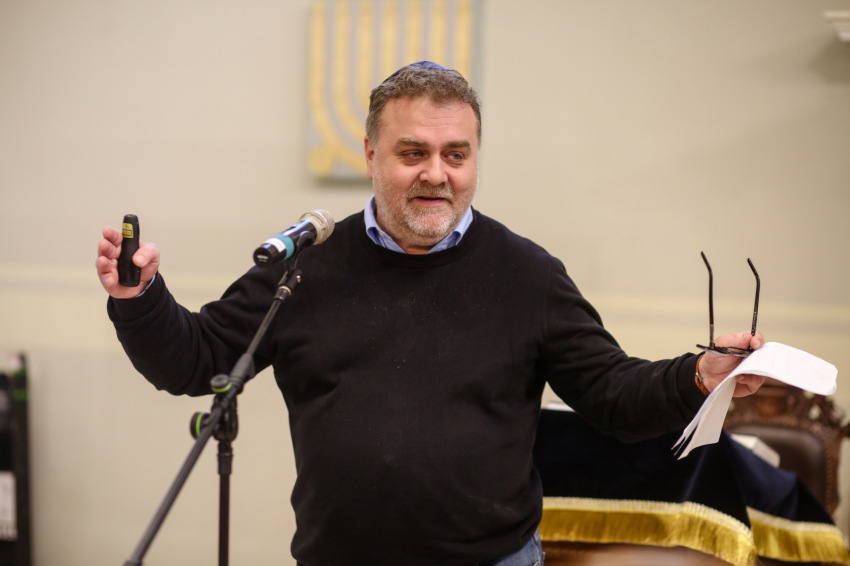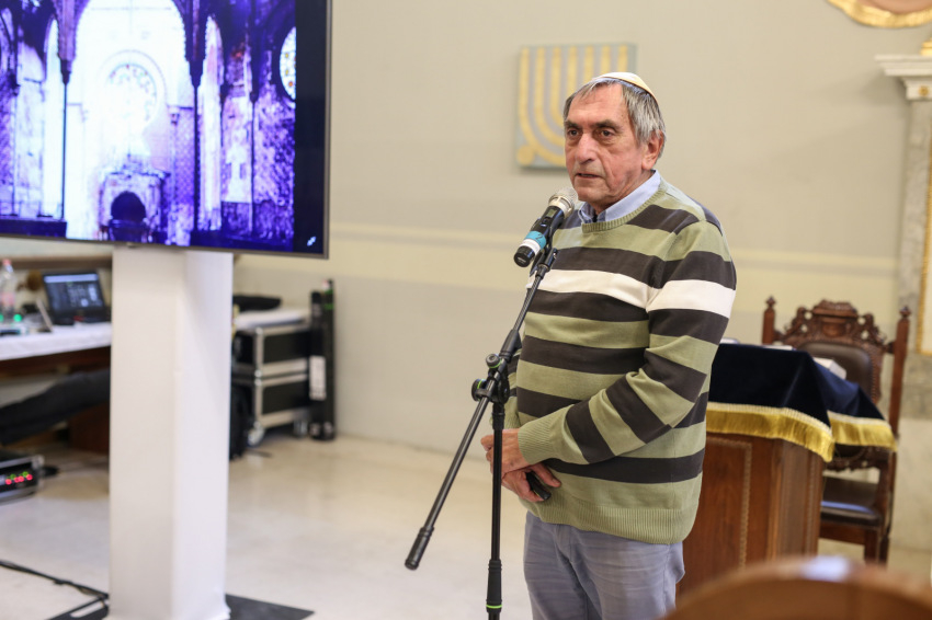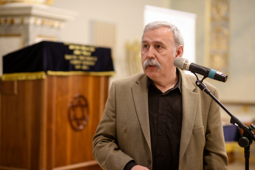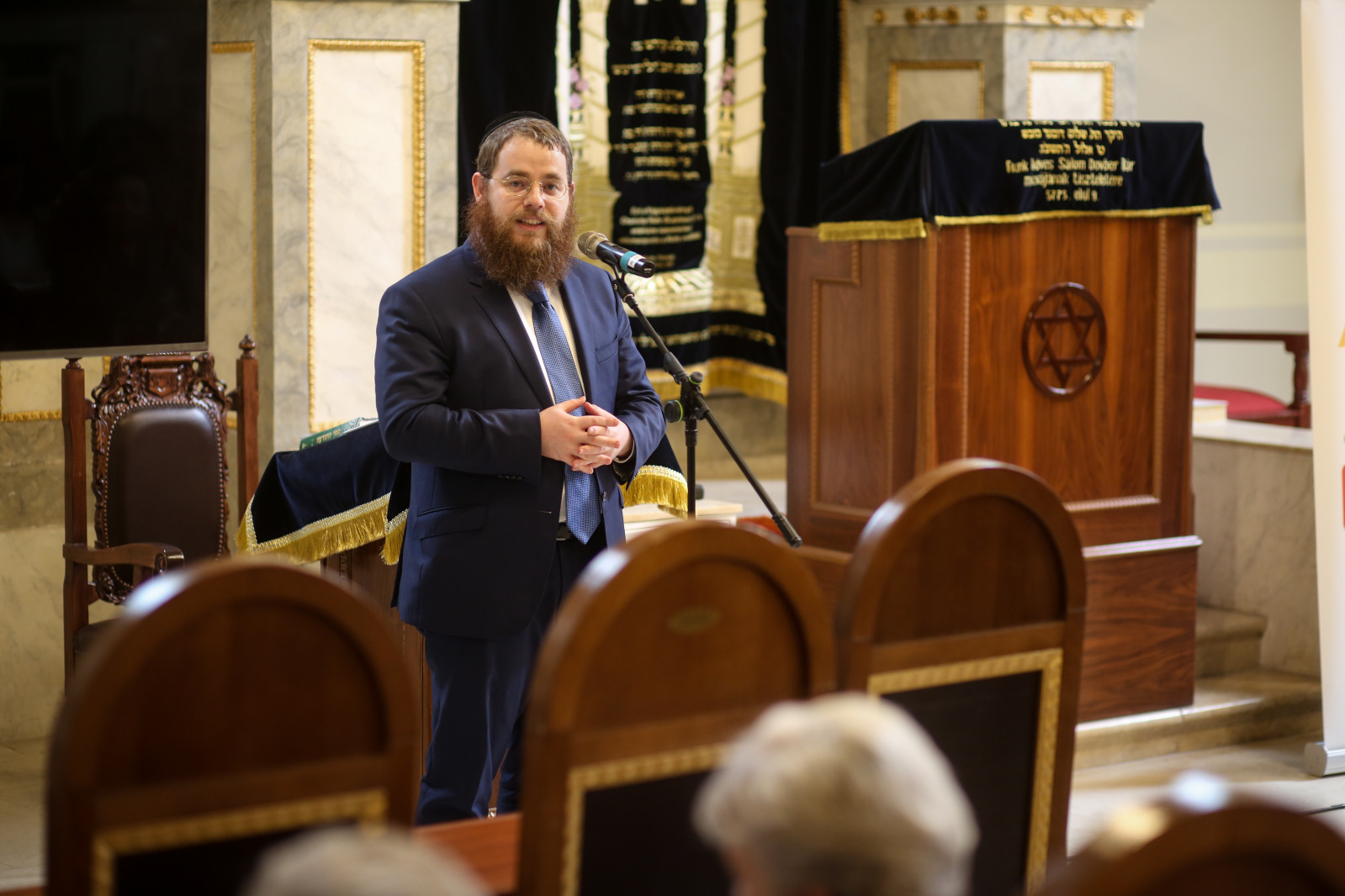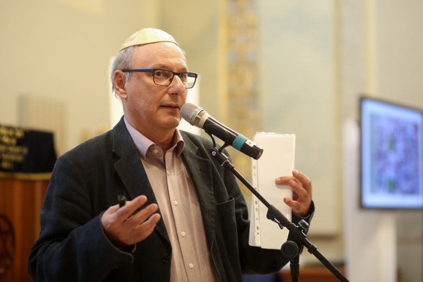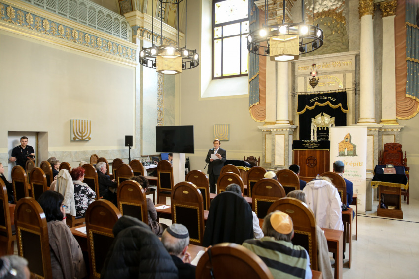 Mohai Gábor előadóművész, műsorvezető, a találkozó konferansziéja felolvasta a távollévő Fekete György, a Magyar Művészeti Akadémia tiszteletbeli elnöke beszédét, majd átadta a szót Köves Slomónak, az EMIH, illetve az óbudai zsinagóga vezető rabbijának, aki a jelen zsinagóga felújításának történetét osztotta meg a hallgatósággal.