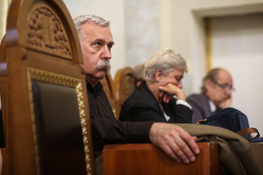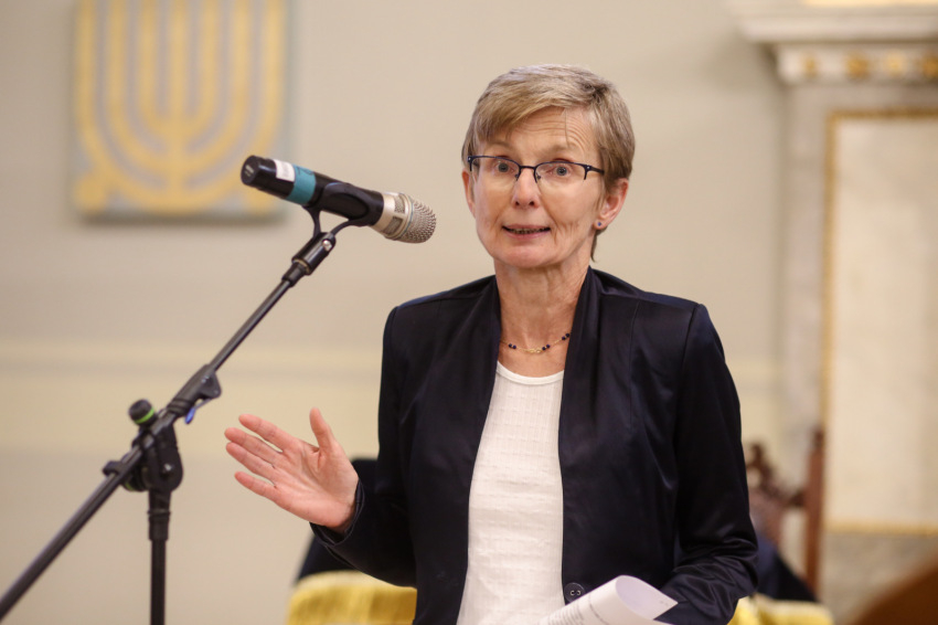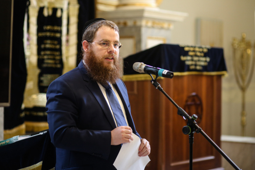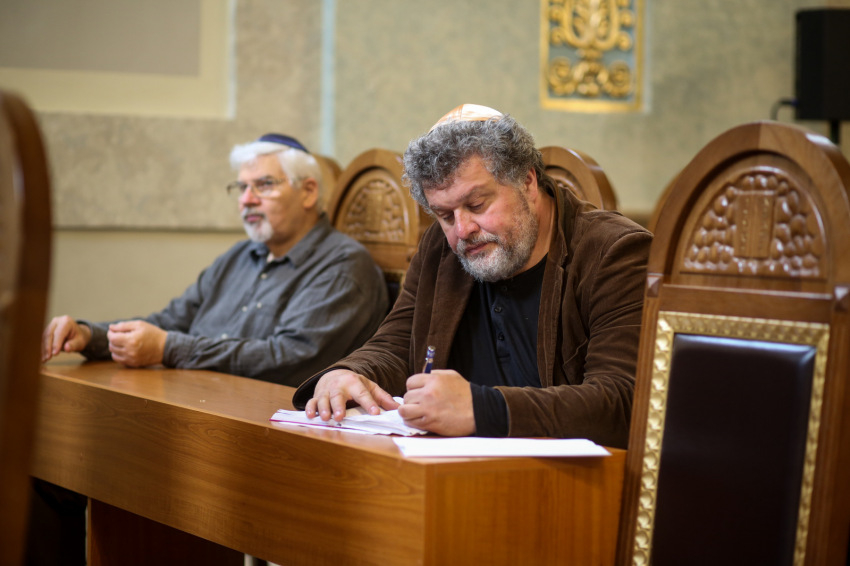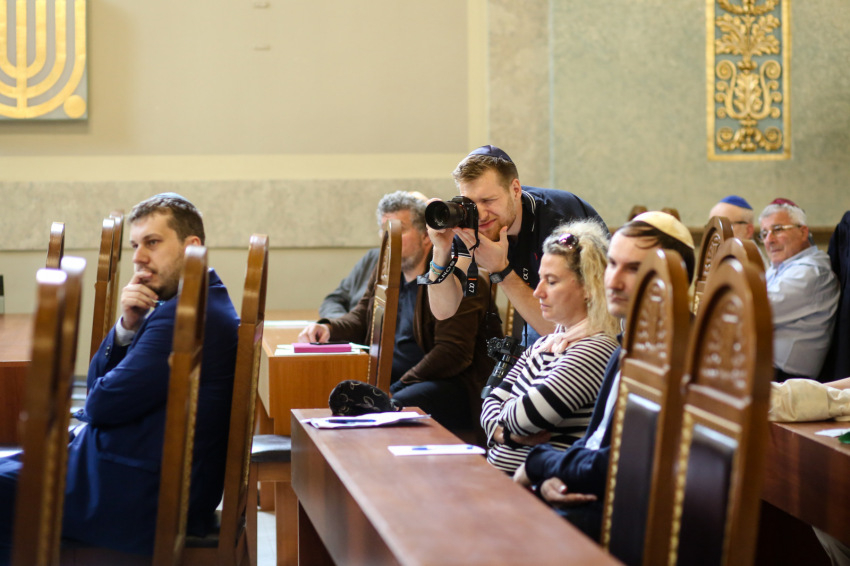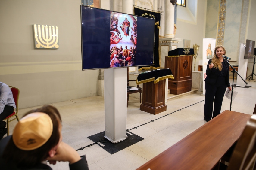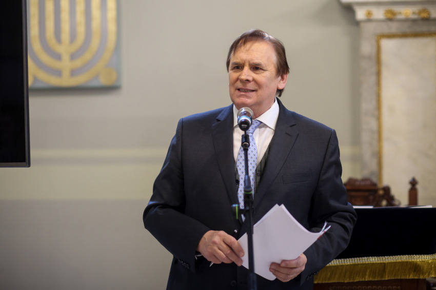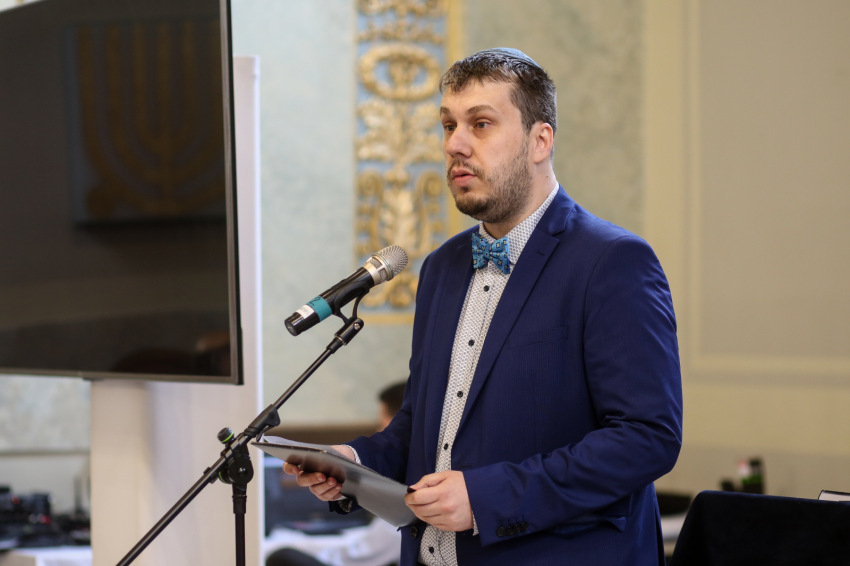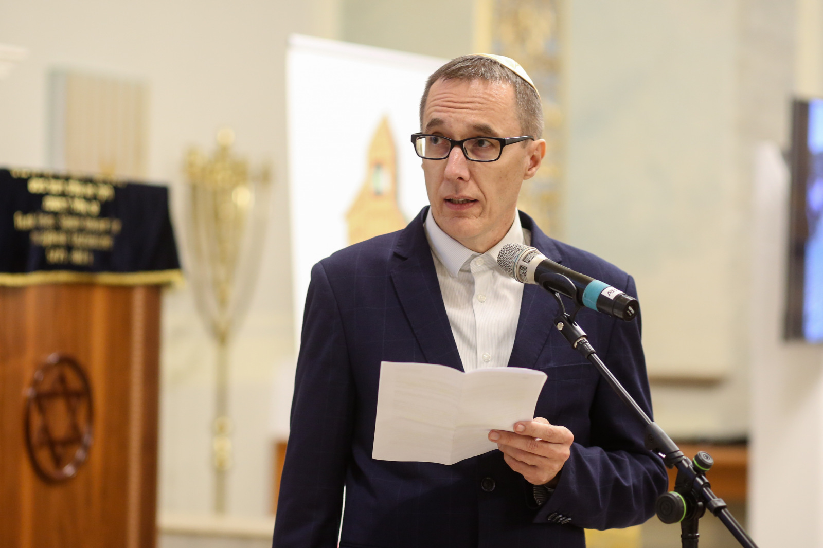 Mohai Gábor előadóművész, műsorvezető, a találkozó konferansziéja felolvasta a távollévő Fekete György, a Magyar Művészeti Akadémia tiszteletbeli elnöke beszédét, majd átadta a szót Köves Slomónak, az EMIH, illetve az óbudai zsinagóga vezető rabbijának, aki a jelen zsinagóga felújításának történetét osztotta meg a hallgatósággal.