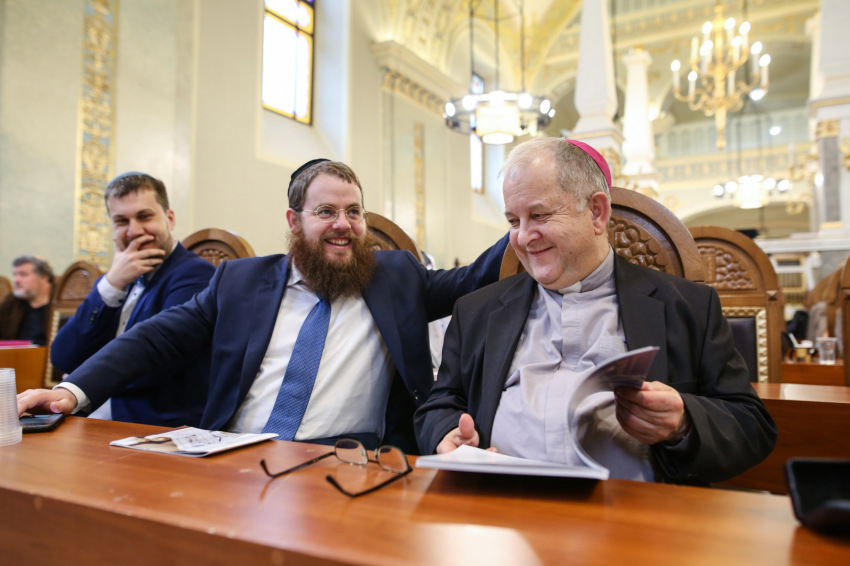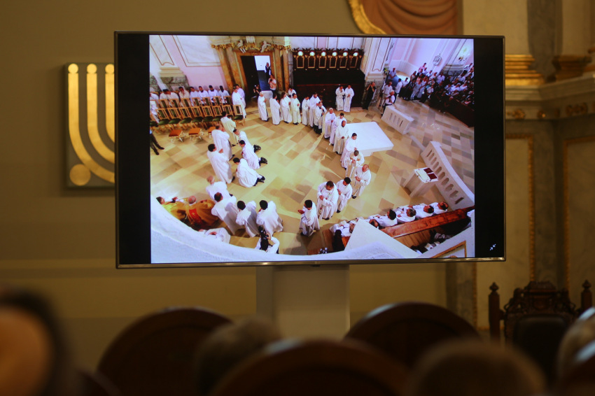 A rabbi előadását katolikus téma követte: Bábel Balázs kalocsa-kecskeméti érsek beszélt a kalocsai főszékesegyház tíz éven át tartó felújítási munkálatairól, majd átadta a szót Vörös Márta egyházmegyei főépítésznek, az érseki múzeum igazgatójának. A főépítész kiemelte az utókornak hátrahagyott jelzések fontosságát, hiszen ő is a korábbi építők jeleiből tudott olvasni munkája során. Nemcsak az időkapszulák tartoznak ide, hanem akár az évszámos téglák is, vagy a kronosztikonok, a díszítőelemeken található latin szövegből kiolvasható évszámok; vagy az építtető érsekek címerei. A székesegyház homlokzatán három érsek címerét láthattuk eddig, most helyezték a tornyon Bábel Balázs érseki címerét.