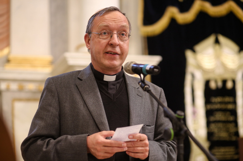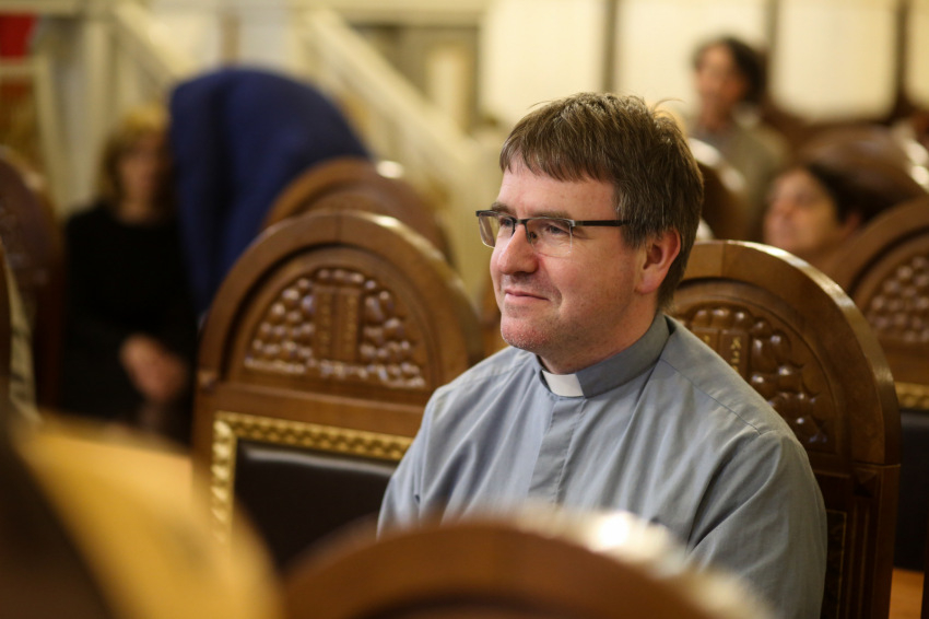 Pákozdi István beszélt a II. vatikáni zsinat utáni változásokról, a pompát kerülő, a közösség igényeit szem előtt tartó újabb tendenciákról; majd a nem katolikus résztvevőknek bemutatta a templom részeit. Megtudtuk, hogy a szentélyekben az igehirdetés helyét azért találjuk különböző magasságokban, mert mindenhol megkeresték azt a helyet, ahonnan legjobban „be lehetett beszélni a templomot”. Napjaink felújításainál fontos szempont, hogy használható közösségi terek jöjjenek létre, például a gyerekek számára; hogy a templom nyújtson lehetőséget a közösségépítésre.