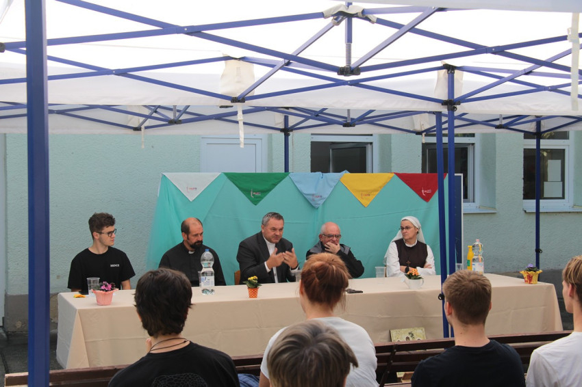 A délelőtt folyamán a szervezők előkészítették a helyszínt Varga László kaposvári megyéspüspök, Felföldi László pécsi megyéspüspök, Zajácz Gábor görögkatolikus parókus és Versegi Beáta Mária CB szerzetesnővér fogadására, ugyanis tíz órakor a Szólj be a klérusnak! című program következett. A Fábián Bence főiskolai hallgató által moderált beszélgetés során a résztvevők a szinodalitással és az Egyházban betöltött férfi-női szerepekkel kapcsolatos kérdéseket fogalmaztak meg.