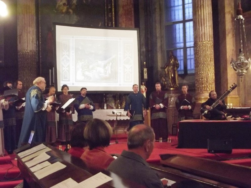 Az informatív kivetítéssel is kísért koncerten Nishat Khan indiai zenére épülő improvizatív játéka eleven nyíltsággal felelt a férfikar által előadott, alapvetően kötött komponálású művek dallamaira, s több esetben valódi együtt muzsikálásnak lehettek fültanúi a hallgatók.
