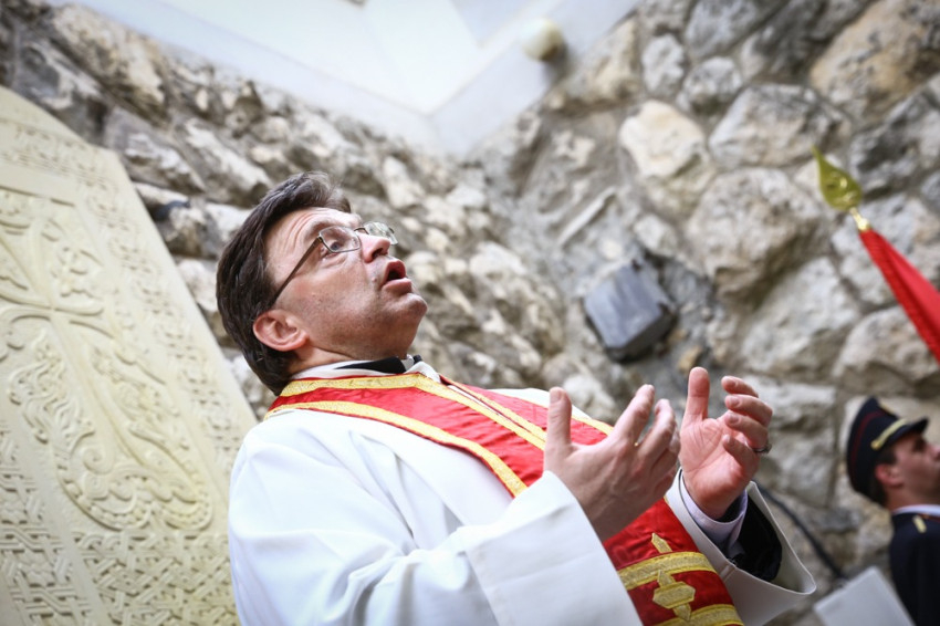 A kereszteskő megáldása után Krikor Badichah felhívta rá a jelenlévők figyelmét, hogy Krisztus kereszthalála óta a kereszt a feltámadás, a győzelem, a sátán legyőzésének a jelképe. Hiába próbálták annyian és annyiszor lerombolni az örmények vallási központjait, mégis itt vannak, mégis hisznek – mondta Krikor Badichah.