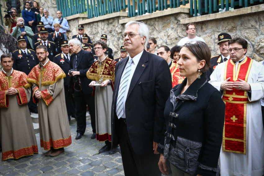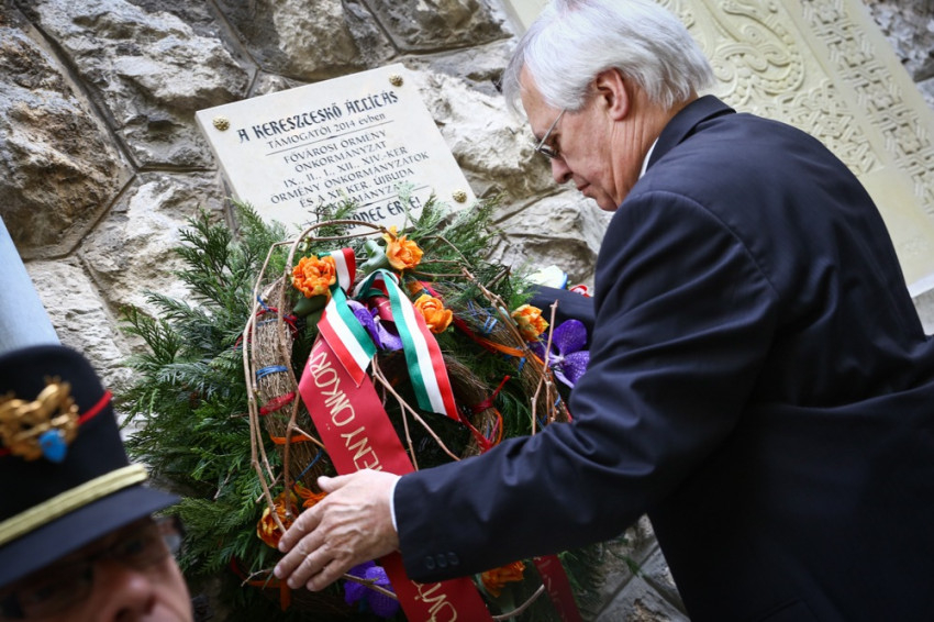 Fülöp Ákos, az örmény katolikus lelkészség plébániai kormányzója arról szólt, emlékezni és megáldani jöttünk ma ide; nem csupán visszagondolunk valami rosszra, hanem egyben kifejezünk valami rendkívül fontosat, mely a továbblépéshez szükséges: az egységet, az összefogást, melyet a kereszt két vízszintes szára is kifejez. Elhelyezzük a tisztelet koszorúit, és megerősödve lépünk tovább, melyhez azonban elengedhetetlen, hogy az Istennel való kapcsolatot megerősítsük.