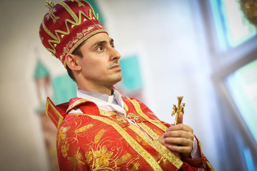 Ma nem sírni gyűltünk össze – hangsúlyozta Krikor Badichah. Elmondta, előző nap tanakodtak, milyen színű ruhában legyen a pap a mai szentmisén – és a vörös mellett döntöttek, amely az öröm színe is, hiszen az örmény vértanúkat szentté avatták, ne sirassuk már őket, akik a mennyben vannak. Legyetek örmények hittel, ne csak szívvel és lélekkel! – szólította fel a híveket a celebráns. Ezután kiemelte a vértanú püspök, Mikajel Hacsadurján példáját, akit börtönbe zártak, megkínoztak, mellkasán tüzet raktak, a saját mellkeresztjének láncával próbálták megfojtani, végül feldarabolták – az ilyen emberek nem halnak meg, emlékezünk rájuk és imádkozunk értük, de ők is imádkoznak értünk, hiszen a mennyben vannak.