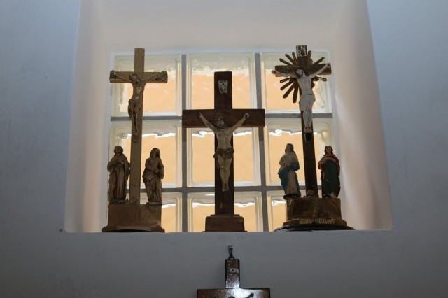 A kiállításon közel száz, anyagában, megmunkálásában, díszítettségében különböző kereszt látható, amelyeket a falu lakói hoztak el otthonaikból. Érezhető, hogy mennyire fontos szerepe van a keresztnek a családban. Anyagukat tekintve fa-, fém-, szalma-, kukoricacsuhé, bambusz-, kerámia-, vert csipke, horgolt és még mézeskalácstésztából készült kereszt is került a tárlatra. A Krisztus testét ábrázoló szobrok vagy korpuszok is többféle anyagból készültek: öntvényből, szalmából, lemezből, porcelánból. Krisztust minden esetben hajjal, szakállal és töviskoronával ábrázolták a készítők.