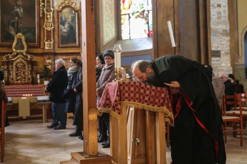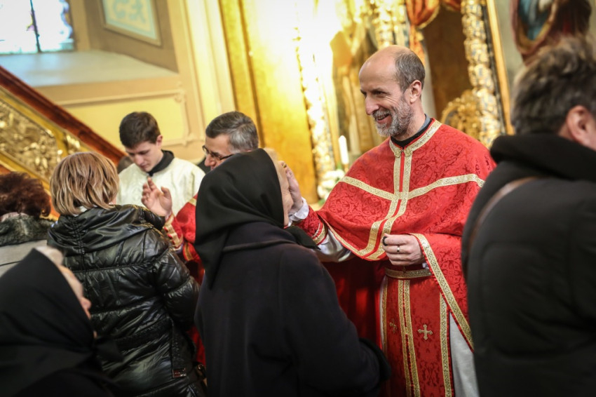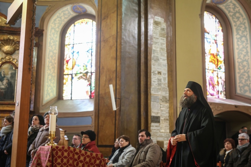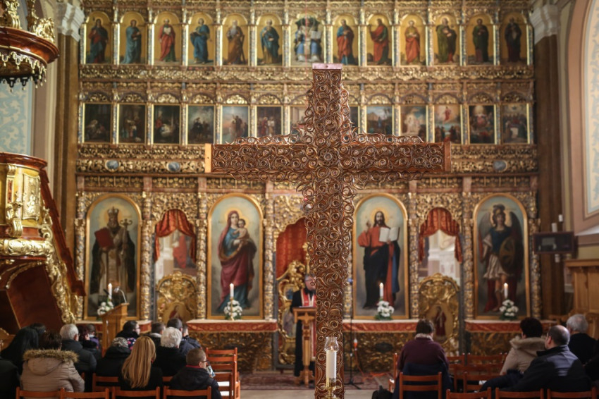 A bizánci hagyomány szerint a templom közepén helyezik el a nagyböjtben a keresztet. Jelentéssel teli a helyválasztás, azt üzeni, hogy legyen a mi életünkben is középpontban Krisztus. „Akkor élünk jól, ha ő van a középpontban. A nagyböjtben sem a böjt, a lemondás a lényeg, hanem az, hogy Krisztust ott tudjuk életünk középpontjában. „Imádkozzunk azért, hogy életünk olyan csodálatos legyen, mint ez a templom, ahol itt van édesanyánk és itt van a középpontban Krisztus.”