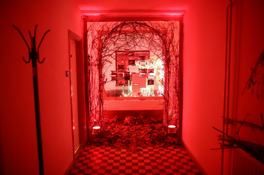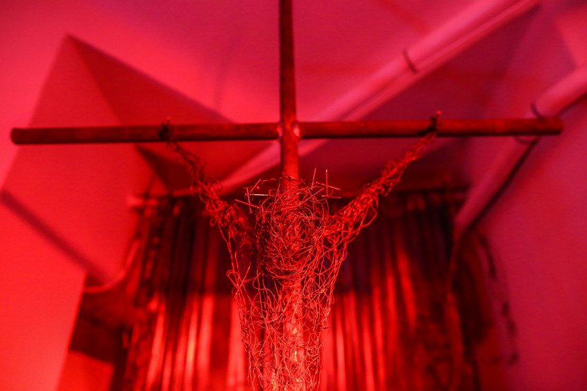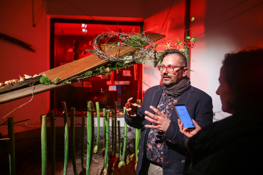 Kruchió László szerkesztőségünknek elmondta, hogy a kiállítást ajándéknak szánta a városnak, mindenkinek, hogy aki bejön, azt a kerengő átvezesse egy gondolatmeneten, bele tudjon helyezkedni ebbe a fájdalomba. A bejáratnál boltívet készített ágakból, tövisekből, le kell hajtanunk a fejünket, amikor belépünk, hogy alázattal legyünk Jézus iránt.