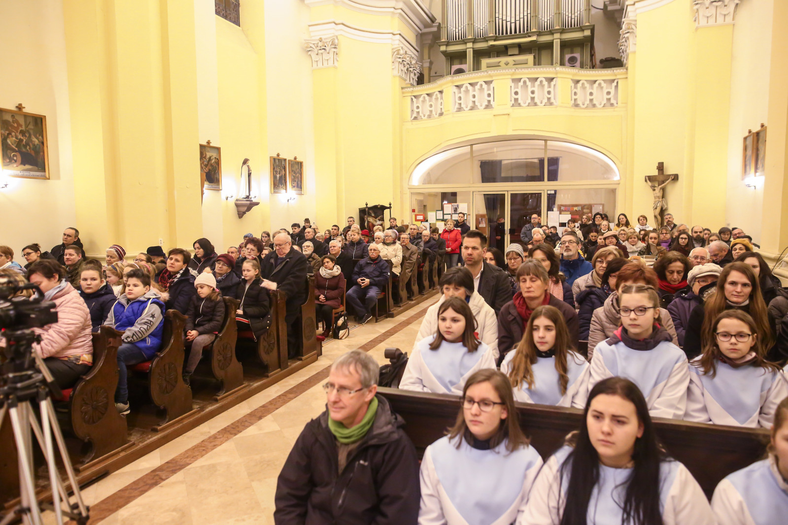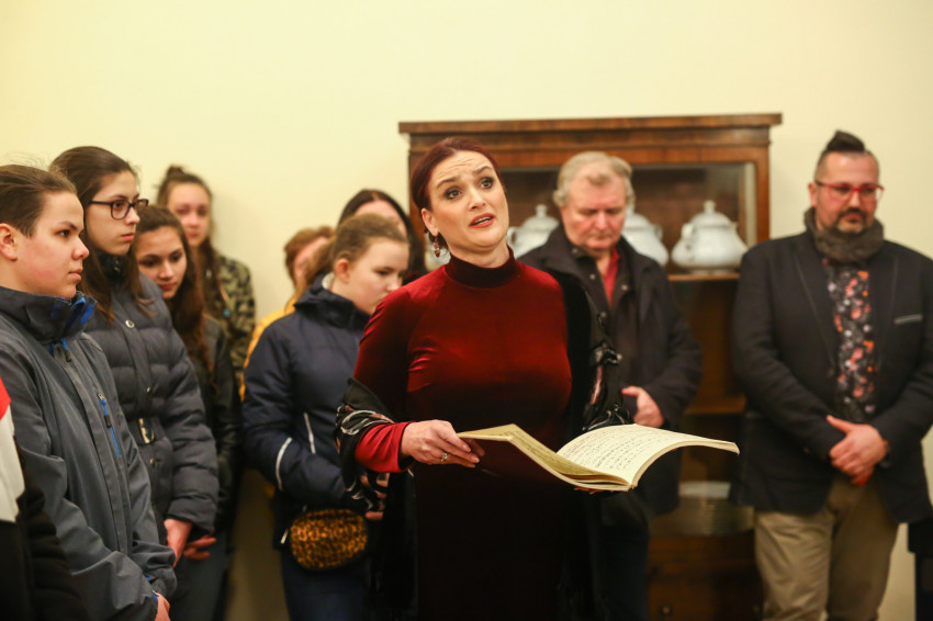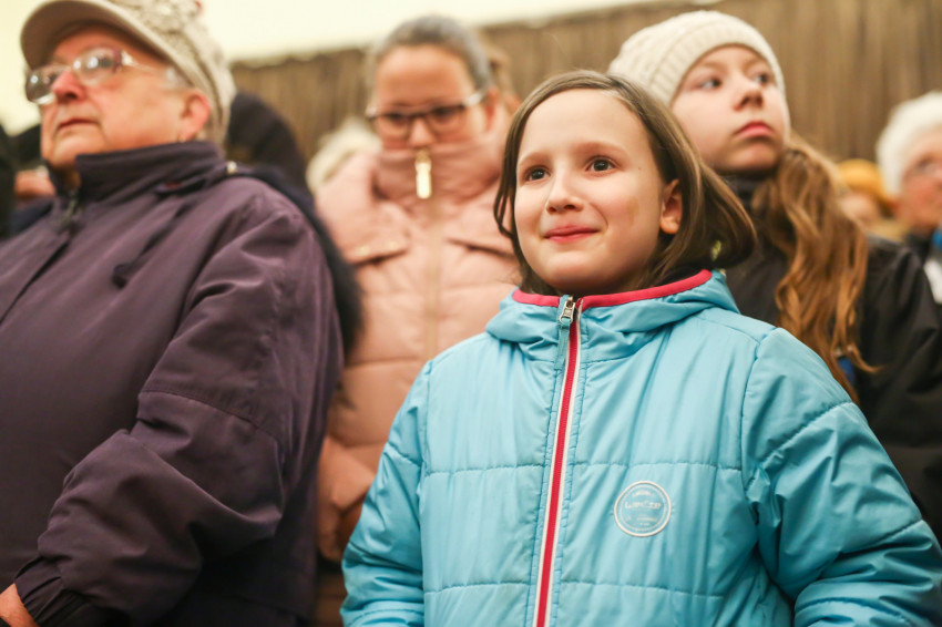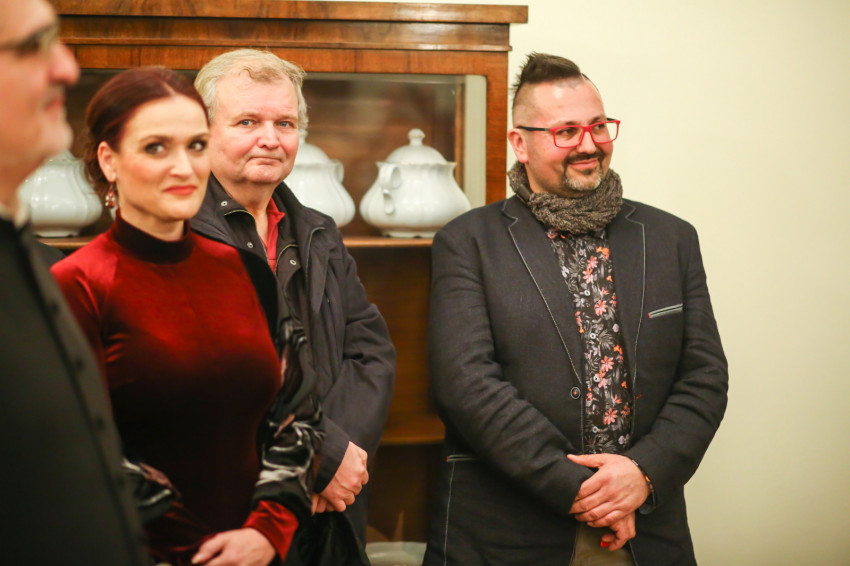 A hívek a szentmise után a plébániára mentek át a kiállítás megnyitójára, ami a közösség igazi ünnepe volt. A katolikus híveken kívül ott voltak a református és baptista lelkipásztorok gyülekezetük néhány tagjával, sokan már be sem fértek a nagyterembe, a kerengőben, a kompozíciók között hallgatták a megnyitót. Megyesi Schwartz Lúcia operaénekes Mocsári Emma zongora- és Edőcs Tamás fuvolakíséretével Bach Máté-passiójából elénekelte az Erbarme dich kezdetű áriát, majd Marton Zsolt püspök megnyitotta a kiállítást.