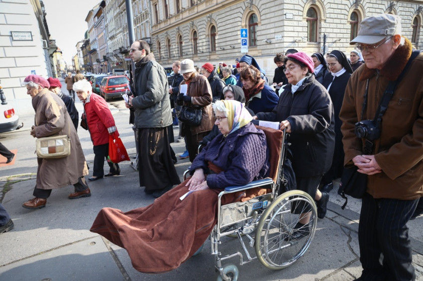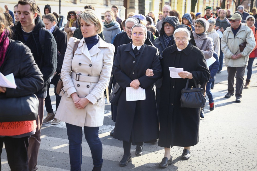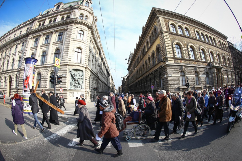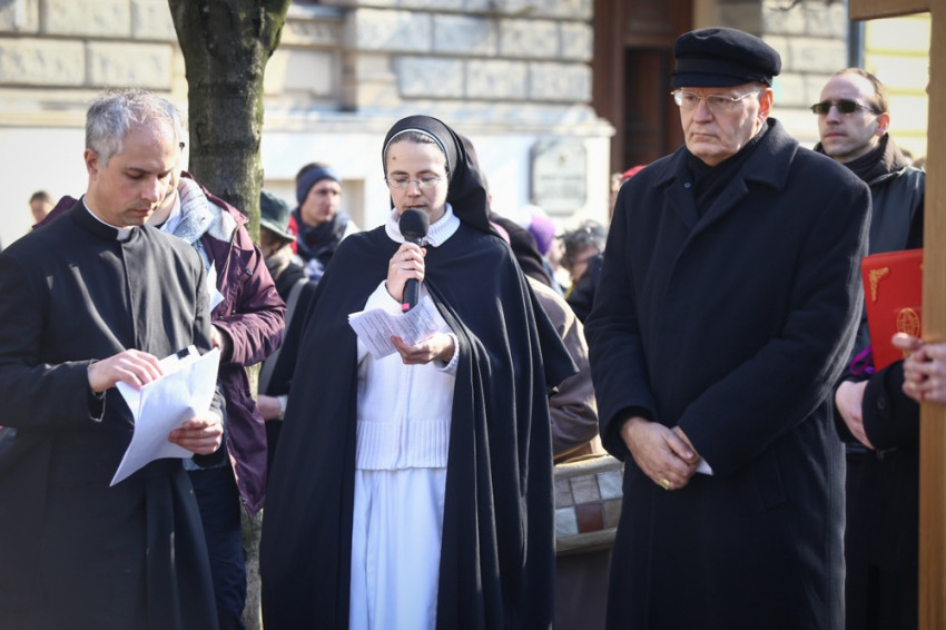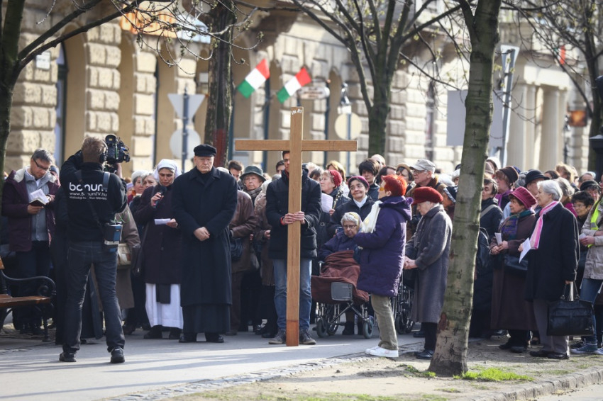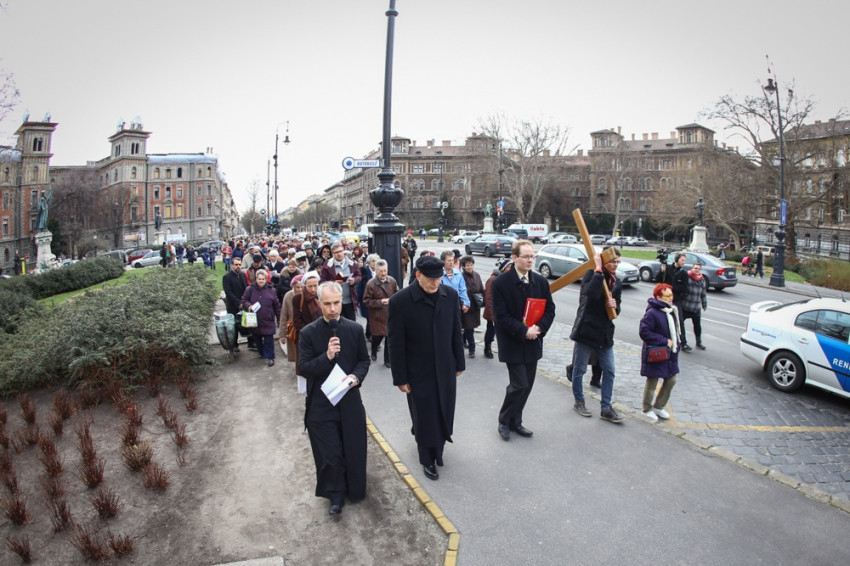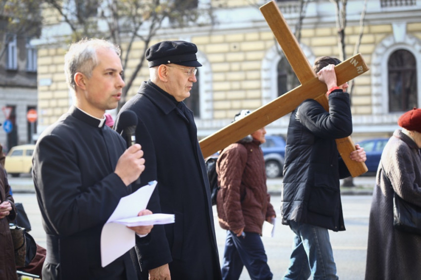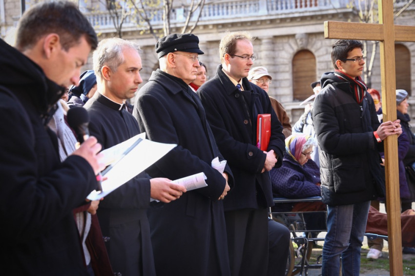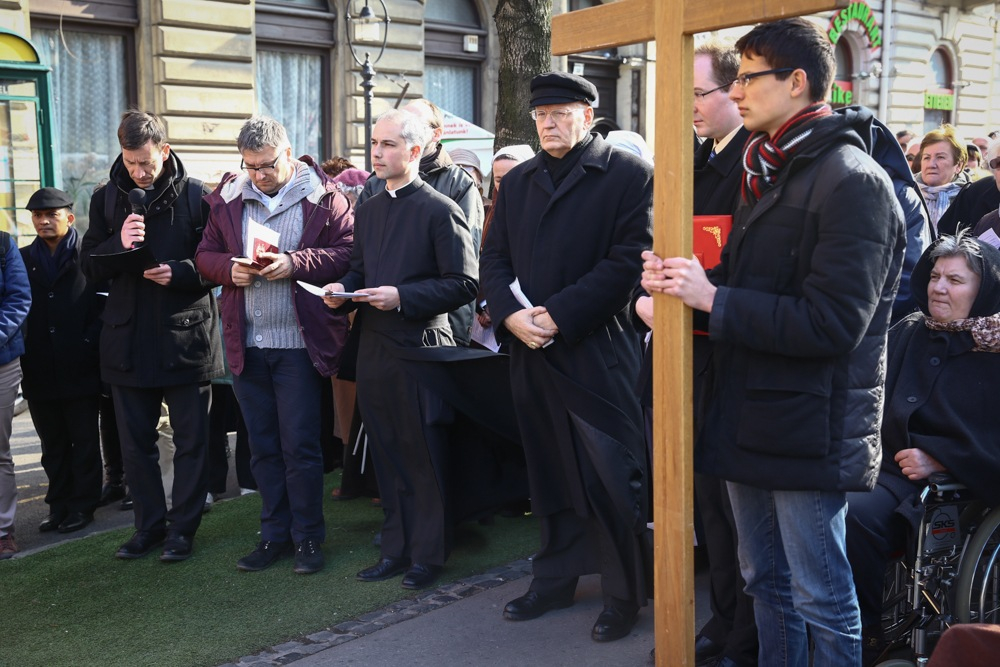 Krisztus szenvedések közepette, értünk és miattunk járta végig a Golgota útját. Keresztútja tanúságtétel az emberért vállalt áldozatról, a szeretetről, a reményről; áldozata értelmet ad a szenvedésnek. Induljunk, és tegyünk tanúságot kereszthordozásunkról – imádkozott Erdő Péter bíboros a menet indulásakor.