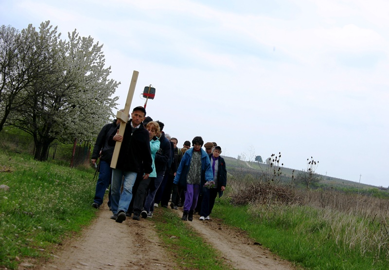 Az utolsó állomáson felállították az addig felváltva hordozott fakeresztet; az azt tartó kőhalmot mezei virágokkal díszítették. A keresztút a résztvevő lelkipásztorok áldásával ért véget.