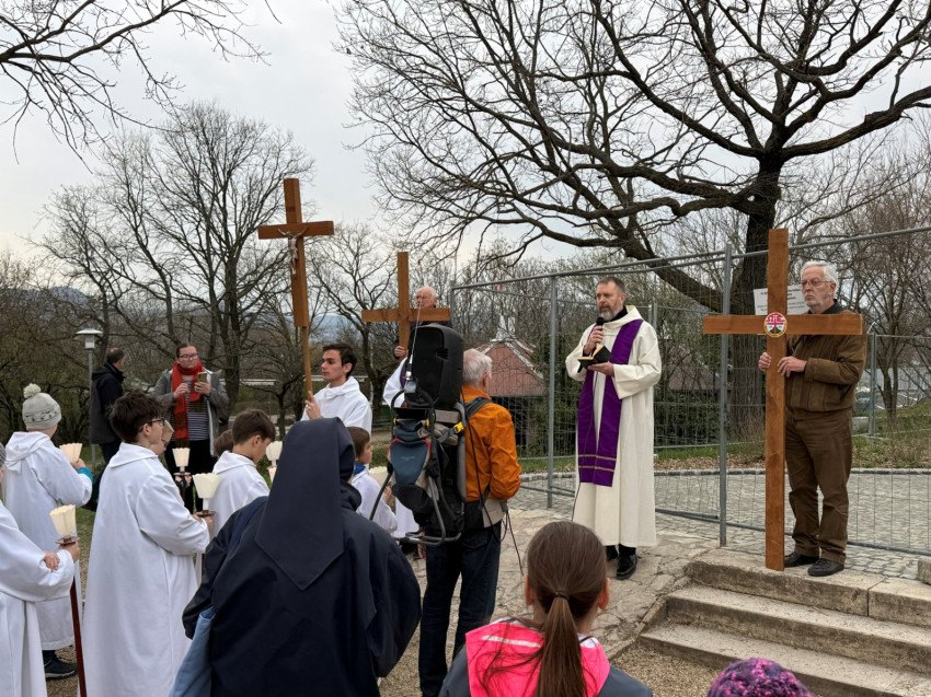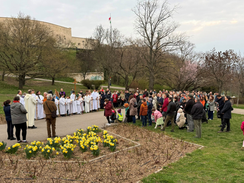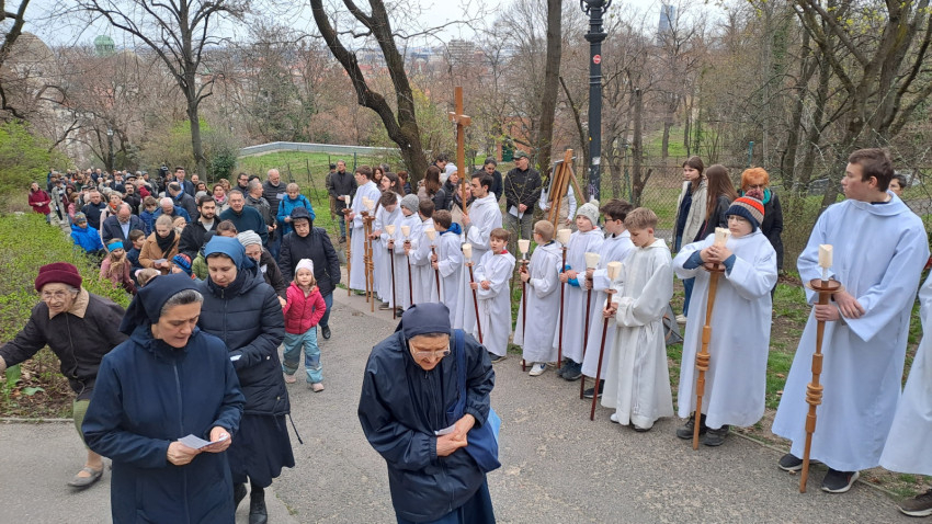 A mostani szombaton is a Sziklatemplom előtti téren gyülekeztek a hívek, hogy Szkaliczki Örs ciszterci szerzetes, szentimrevárosi plébános vezetésével imádkozva és énekelve elinduljanak a hegy tetejére. Mellette lazarista és pálos testvérek, valamint egy Dallasból érkezett ciszterci szerzetes, John atya segédkeztek az elmélkedések felolvasásánál.