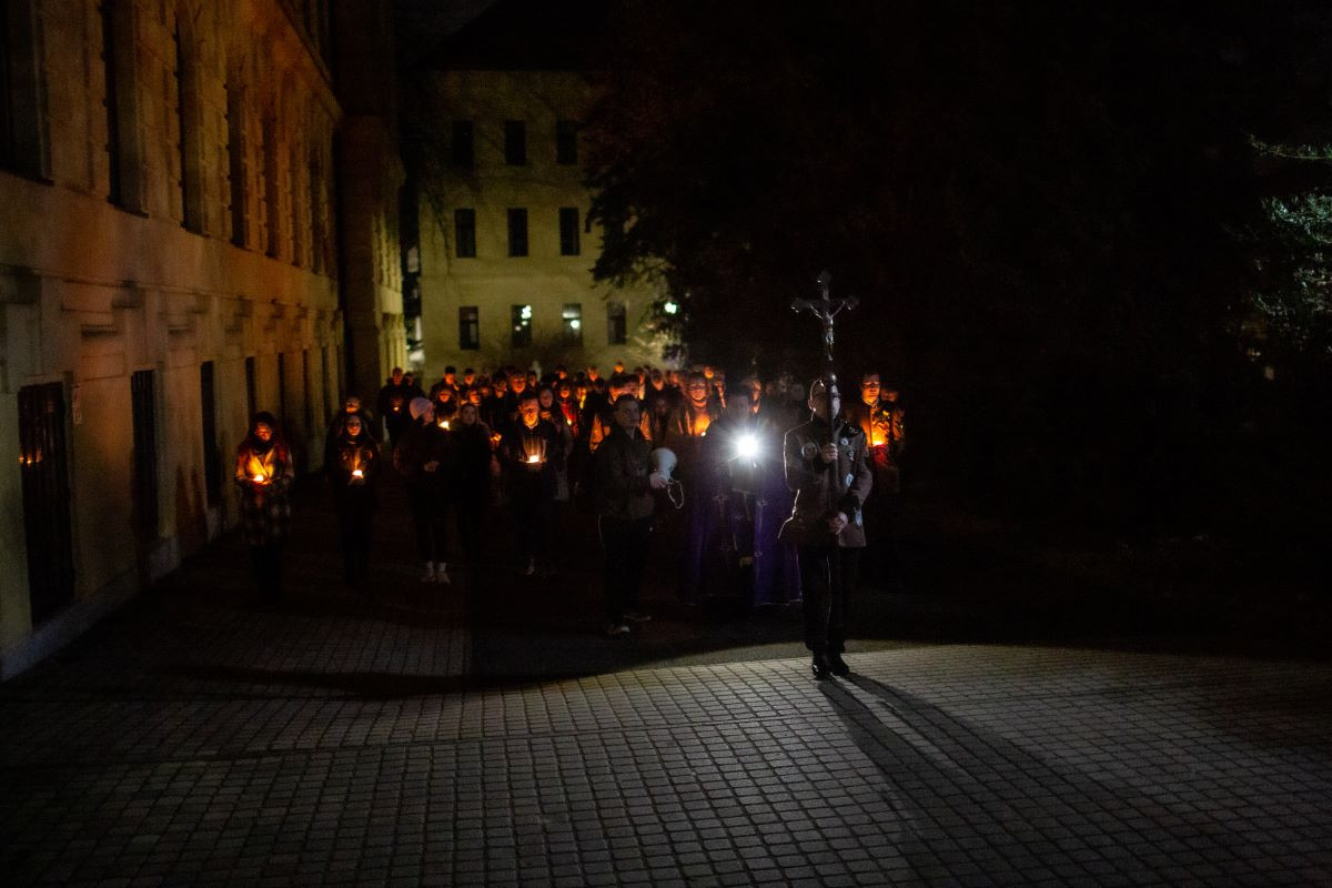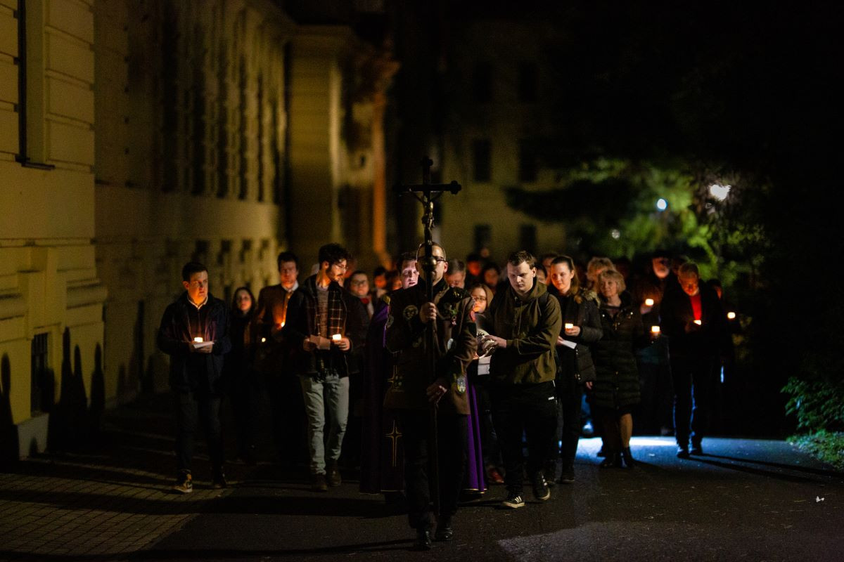 A keresztutat a park érintetlen csöndjében, gyertyafénnyel járták, melyek segítették az elmélyülést az egyes állomások mondanivalójában.