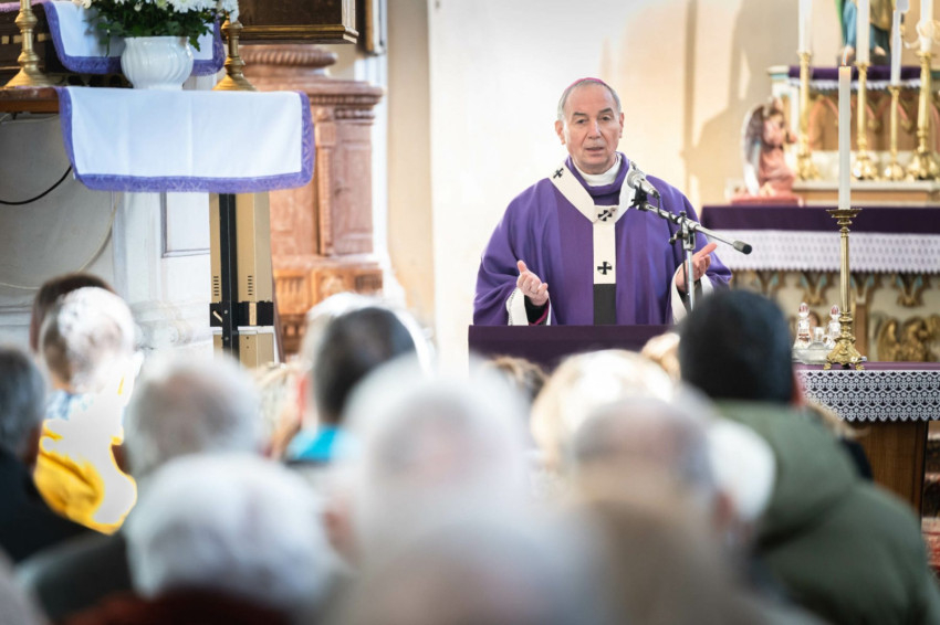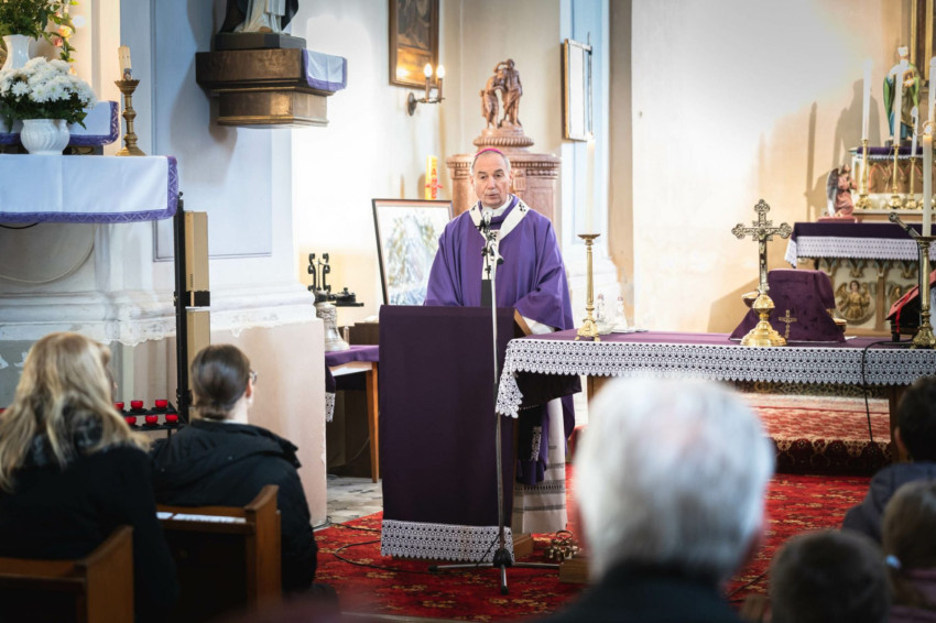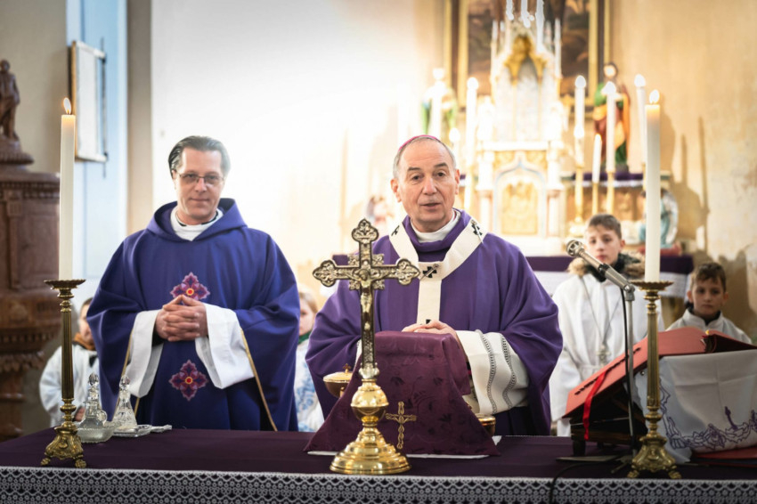 Udvardy György érsek a szentmise elején úgy fogalmazott: „Összejövünk, hogy ünnepeljük az Eucharisztiát, Krisztus áldozatát, és mi magunk is részesedjünk a nagyböjt szent idejében. Sor kerül egy kép megáldására, amelyet a településhez tartozó kápolnában helyeznek majd el, és a felújított temetői harang megáldására is. A harang mindig Isten szavát, Isten jelenlétét hozza közel hozzánk. Nagy öröm, és a nagyböjt kezdetéhez illeszkedik, hogy lehetőség van megáldani az elkészült stációkat, keresztutat is.”