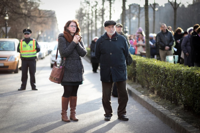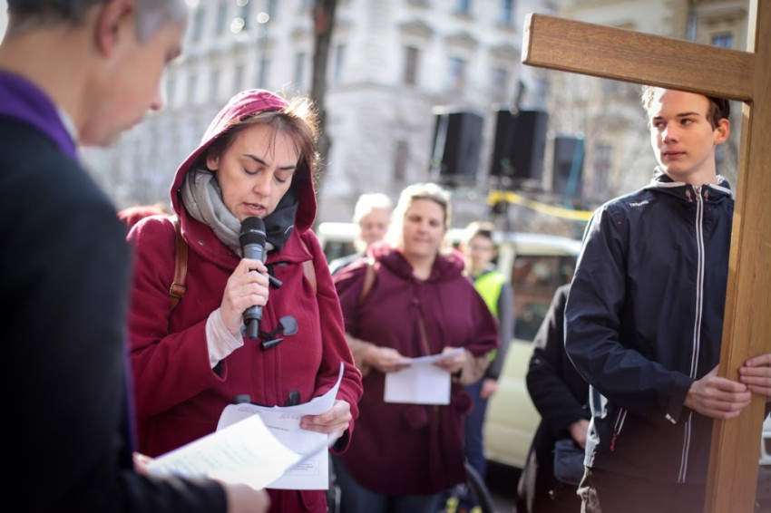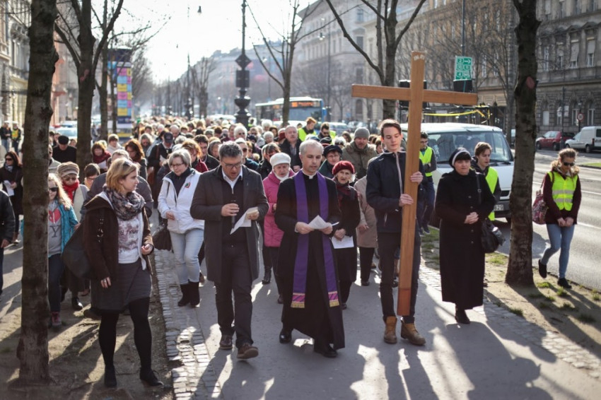 A keresztútjárók, ahogy a gyalogos és buszos turisták között imádkozva haladtak a keresztet követően, kicsit megérezhették, mennyire kilógott a tömegből a jeruzsálemi Via Dolorosán végigvonuló, keresztjét cipelő Krisztus. A keresztút nem feltétlenül csak őket érintette meg: egy padon ülő férfi el is sírta magát, amikor a Jézus haláláról szóló 12. állomást imádkozták.