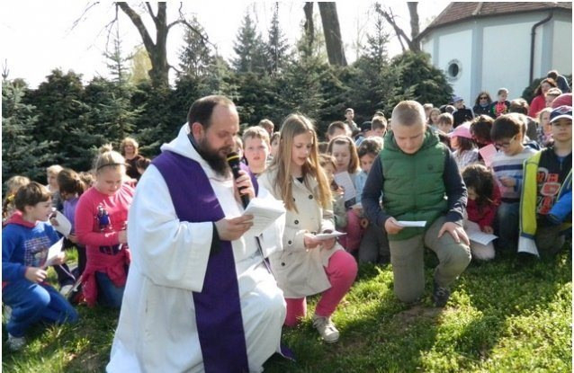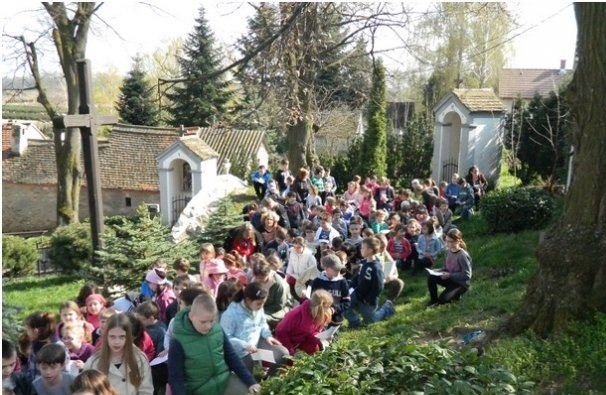Délután buszokkal utaztak Gencsapátiba, ahol rövid séta után a szentkútnál a délutáni program lelki vezetője, Inzsöl Richárd atya várta a zarándokokat. Az egyes stációk szövegéből már előre felkészültek a gyermekek. Az állomások között énekelve kísérték végig Jézust szenvedésének útján. Búcsúzóul Richárd atya megáldotta az iskola alsós közösségét – írta Lendli Erzsébet.