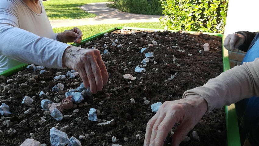 A kertekben a betegek bármikor sétálhatnak, időbeosztás nélkül, aki álmatlanságban szenved, akár éjjel is, egyedül, önállóan vagy a személyzet kíséretében: a betegek teljesen szabadon élvezhetik a kerteket. Az illatos fűszercserjék alatt vagy a szamócafák között a rokonokkal és barátokkal találkoznak, üldögélnek a szabadban, művelik a kertet és a virágokat, illetve vannak szervezett programok is, mint a zeneterápia, kertészkedés, szenzoros tevékenységek. Még kerekesszékben is lehet kertészkedni, köszönhetően az ülőmagasságig megemelt magaságyásoknak.