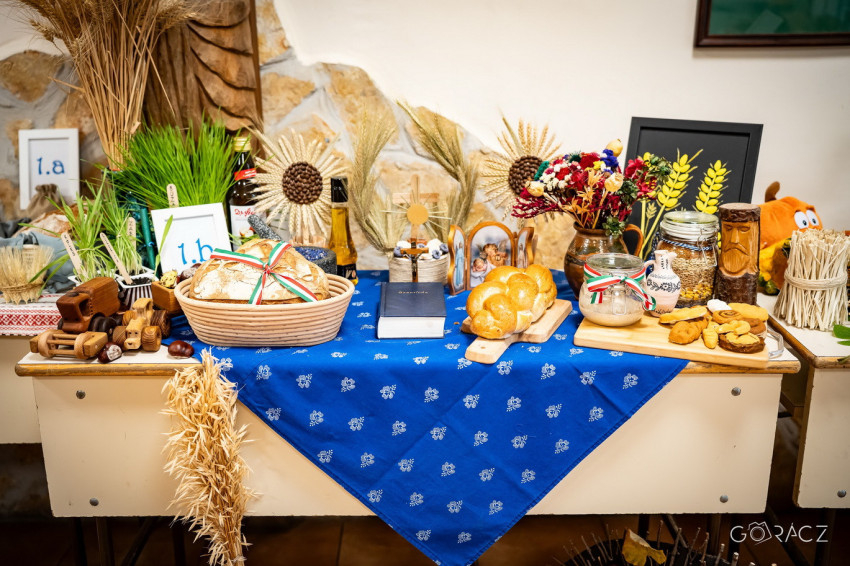 Az iskolai aulában minden osztály elkészítette saját installációját, amelyeken a kenyérrel kapcsolatos tárgyak, versek, imádságok és a hét témájához illő dekorációk kaptak helyet.