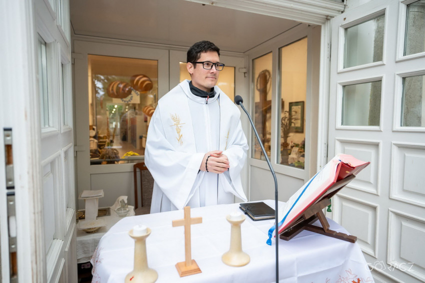 Az átadó ünnepségen Faragó András káplán terményáldással egybekötött szentmisét mutatott be, majd megszentelte az új közösségi teret.