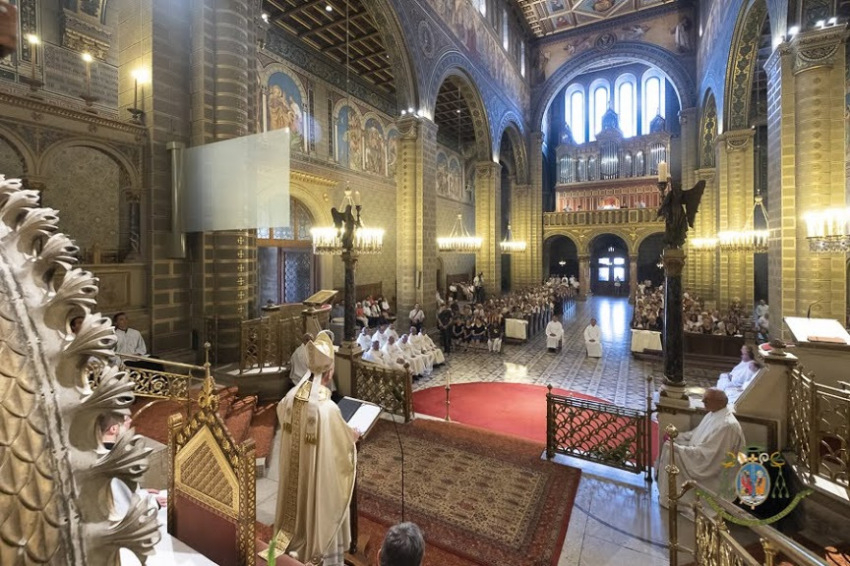 Udvardy György pécsi megyéspüspök homíliájában a Lélek működésére való odafigyelésre buzdított. „Bízunk abban – Krisztus tanítása szerint –, hogy az Ő Lelke vezeti az Egyházat. Ennek lehettünk tanúi, amikor hallottuk az Apostolok cselekedeteinek leírásából a diakónusok kiválasztásának a történetét, és ennek vagyunk tanúi akkor is, amikor az evangéliumban az új borról és az új tömlőről hallhattunk. Az apostolok feladata, hogy figyeljenek Mesterük tanítására, az általa küldött Lélek tanítására. Egyben minden kor keresztény közössége számára feladat és példa, a püspök, a pap és a hívő nép számára is egyaránt.”