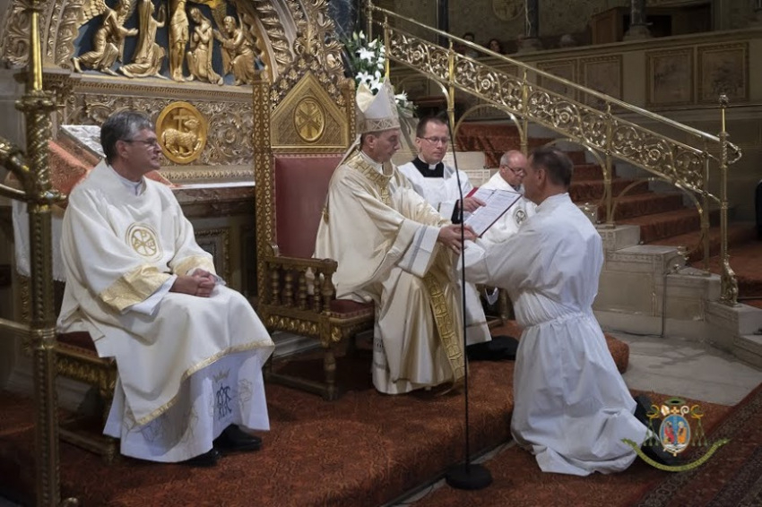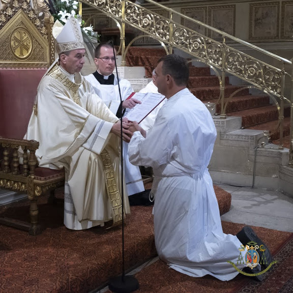 Éppen húsz évvel ezelőtt egy másik úton indult haza, vagyis a végtelen Isten felé. Ezen az úton Ő megajándékozta a hivatásából fakadó szolgálat örömével, feleségével, gyermekeivel és mindezt most teljessé teszi a diakónusi szolgálat megélésével. Jelmondata: „Mit akarsz, mit tegyek veled?” (Lk 18,41)